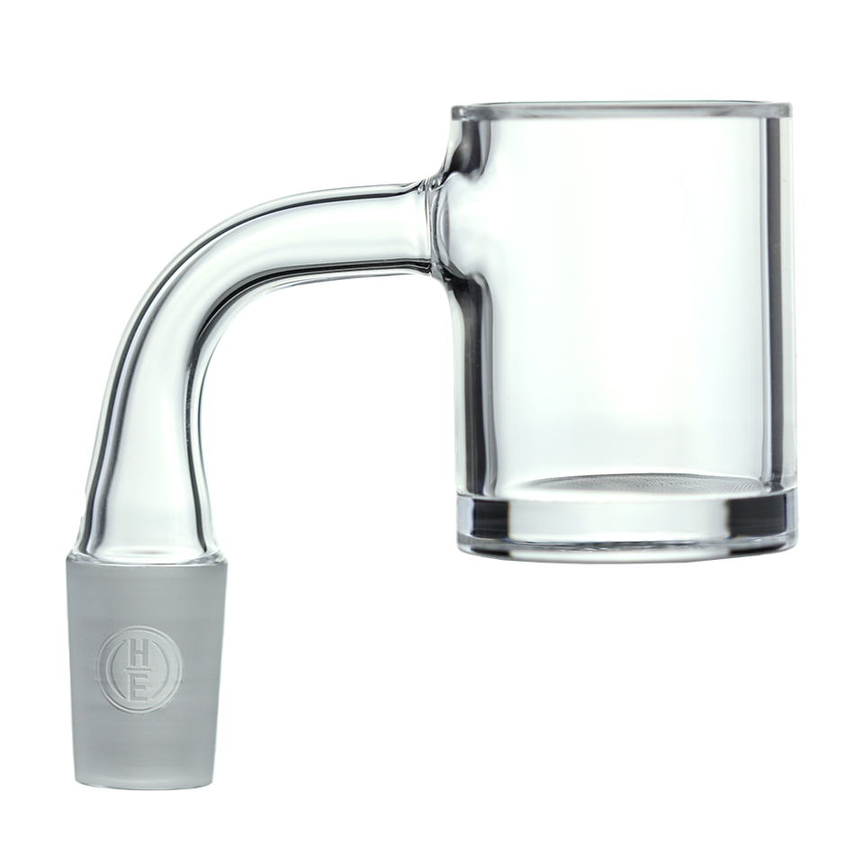 SE Gavel 25mm Quartz Banger. The Gavel SE features the new Surface Enhanced quartz floor. The surface is engineered to substantially improve the efficiency of the oil vaporization process by increasing surface free energy, decreasing liquid surface tension, promoting nucleate boiling and rapidly increasing evaporation rates. The enhancements were designed to be both extremely durable and easy to clean. While we recommend iso for cleaning any nail; maintenance can be managed with dry cotton swabs. This is different from the opaque which required iso alcohol maintenance to avoid black carbon spots. The bottom is engraved and that engrave becomes visible through the top of the bucket when the surface is wet. When the floor is dry, the engrave is again hidden by the opacity of refracting light.