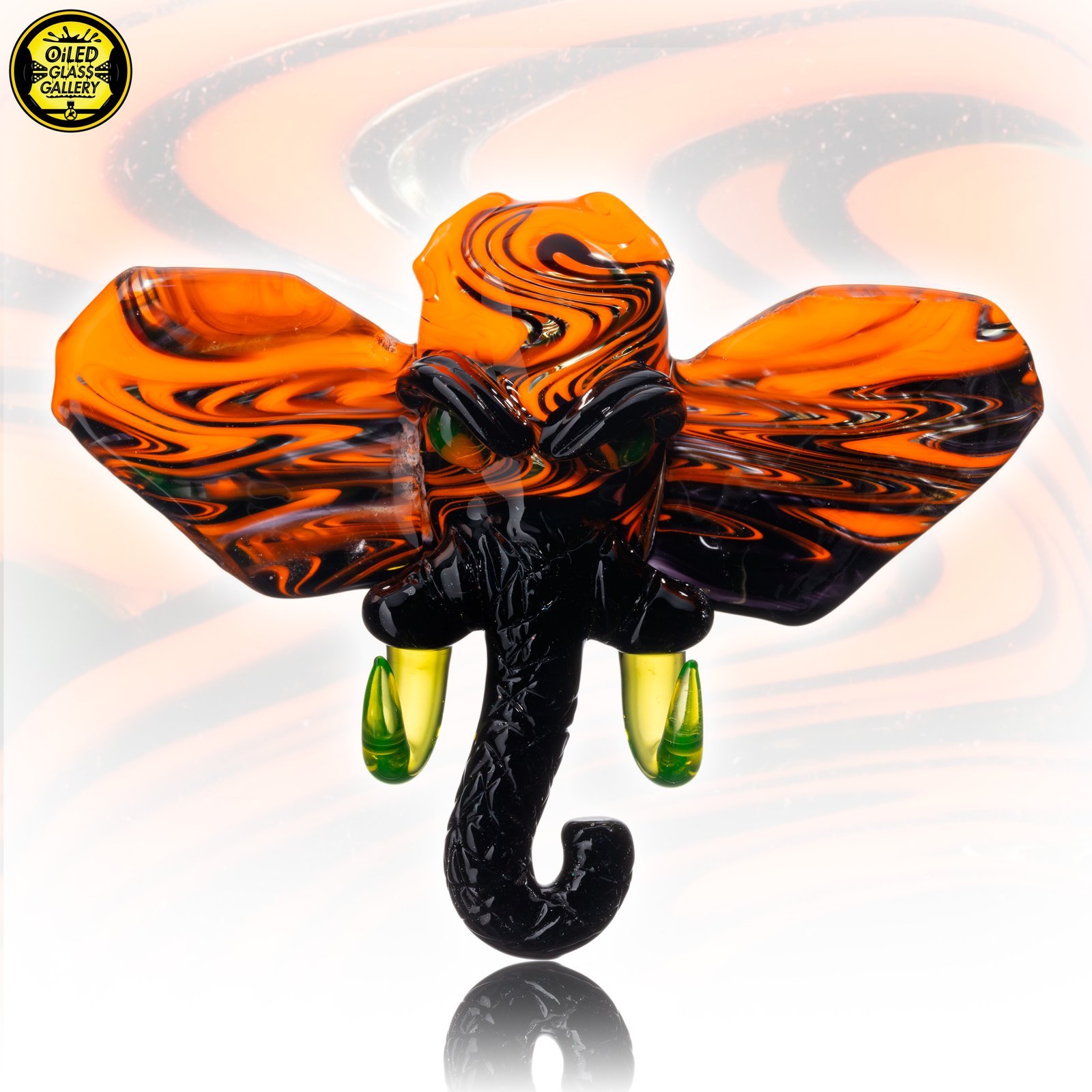 2019 2.25in x 2in x 1.75in Cow head pendant made of White retticello over Rainbow & Black retticello, custom UV Horns, Black & White ears and face with millefiori eyes.