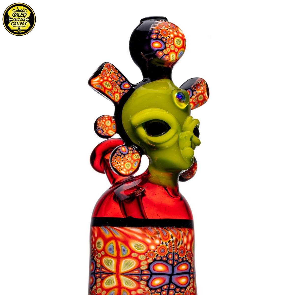 2021 10mm 7.25in Ancient Astronaut millefiori tube made of Northstar Glass Pomegranate and Northstar Glass Timber. This Astronaut features chipstacked and encased milles with an opal on the forehead. Comes shipped in a Black Pelican 1150 case.