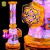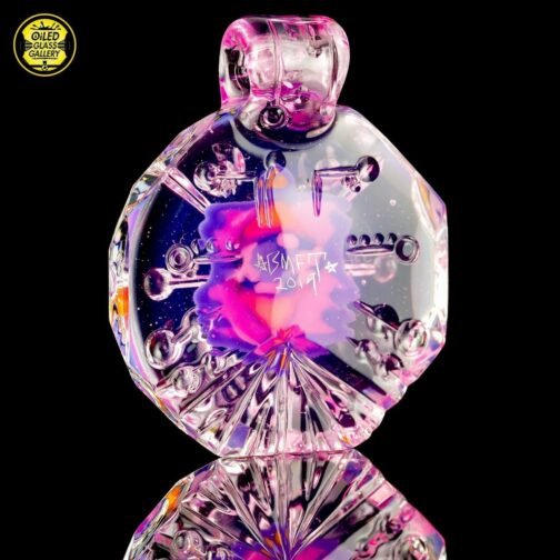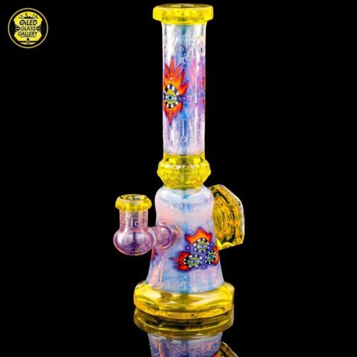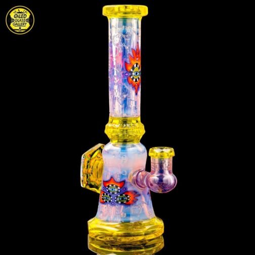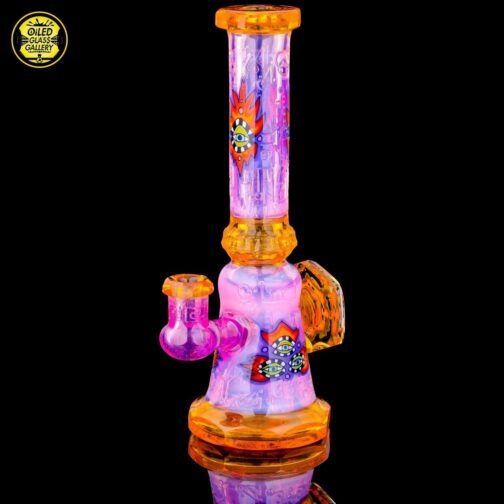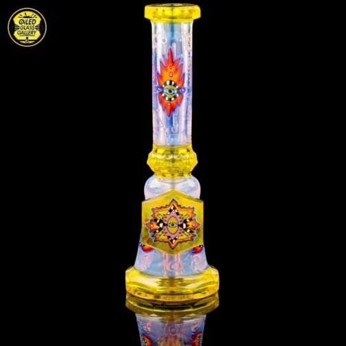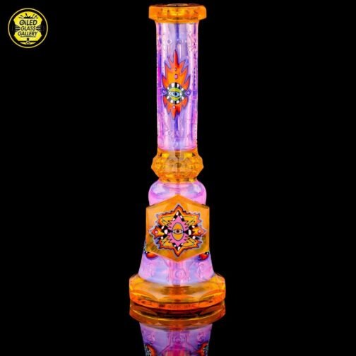2018 10mm 8.5in CFL Terps x Voodoo “3rd Eye” Tube set from the facet king Murdoc Glass and flip god BMFT. This piece represents visions they both had and were able to pull out of their hearts and minds put into this piece. Made over multiple hot and cold working sessions out of Glass Alchemy Voodoo and Terps. They both shared assembly and cold working duties and came out with this awesome result. This piece will come with a matching CFL Voodoo faceted pendant and comes shipped in an Orange Pelican 1400 case.