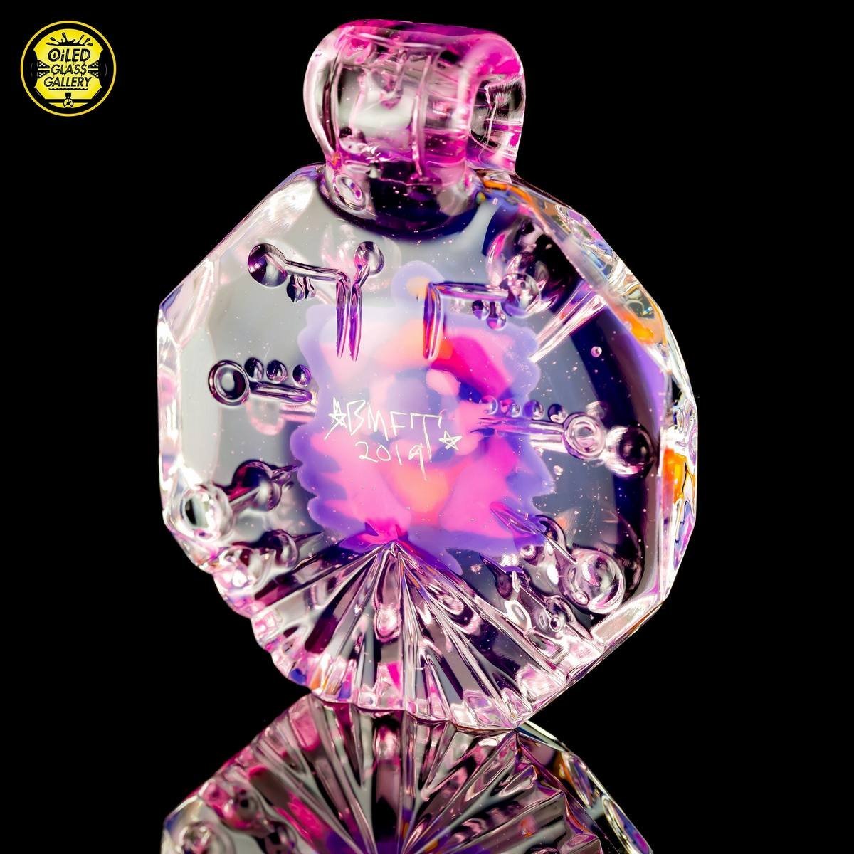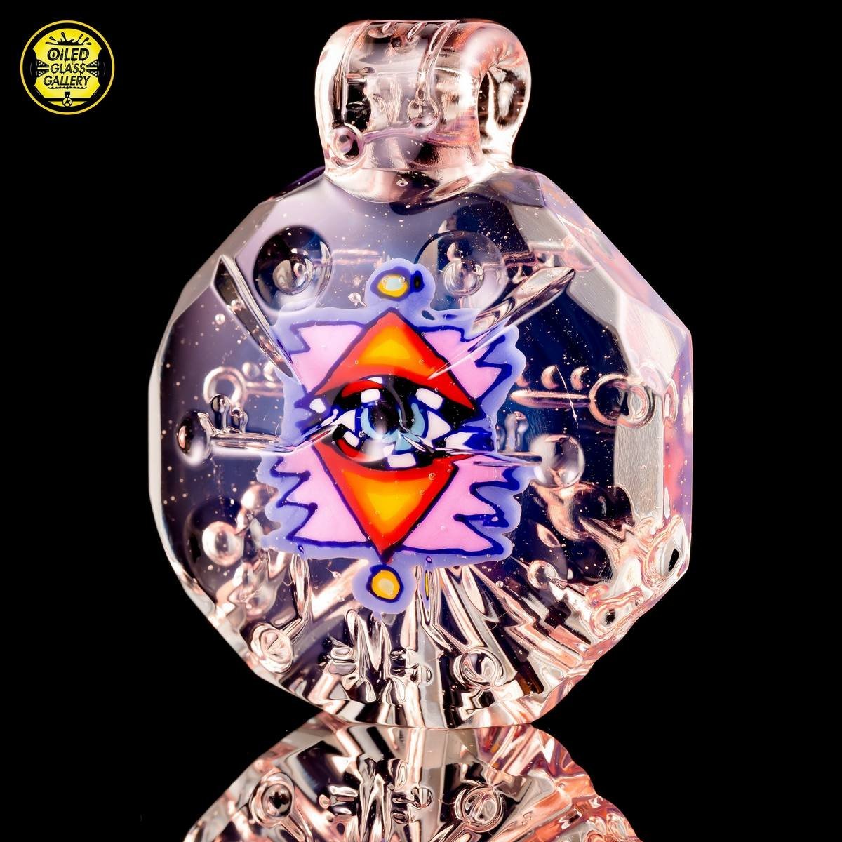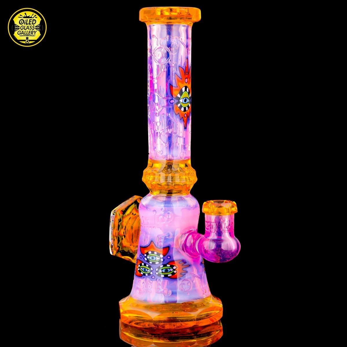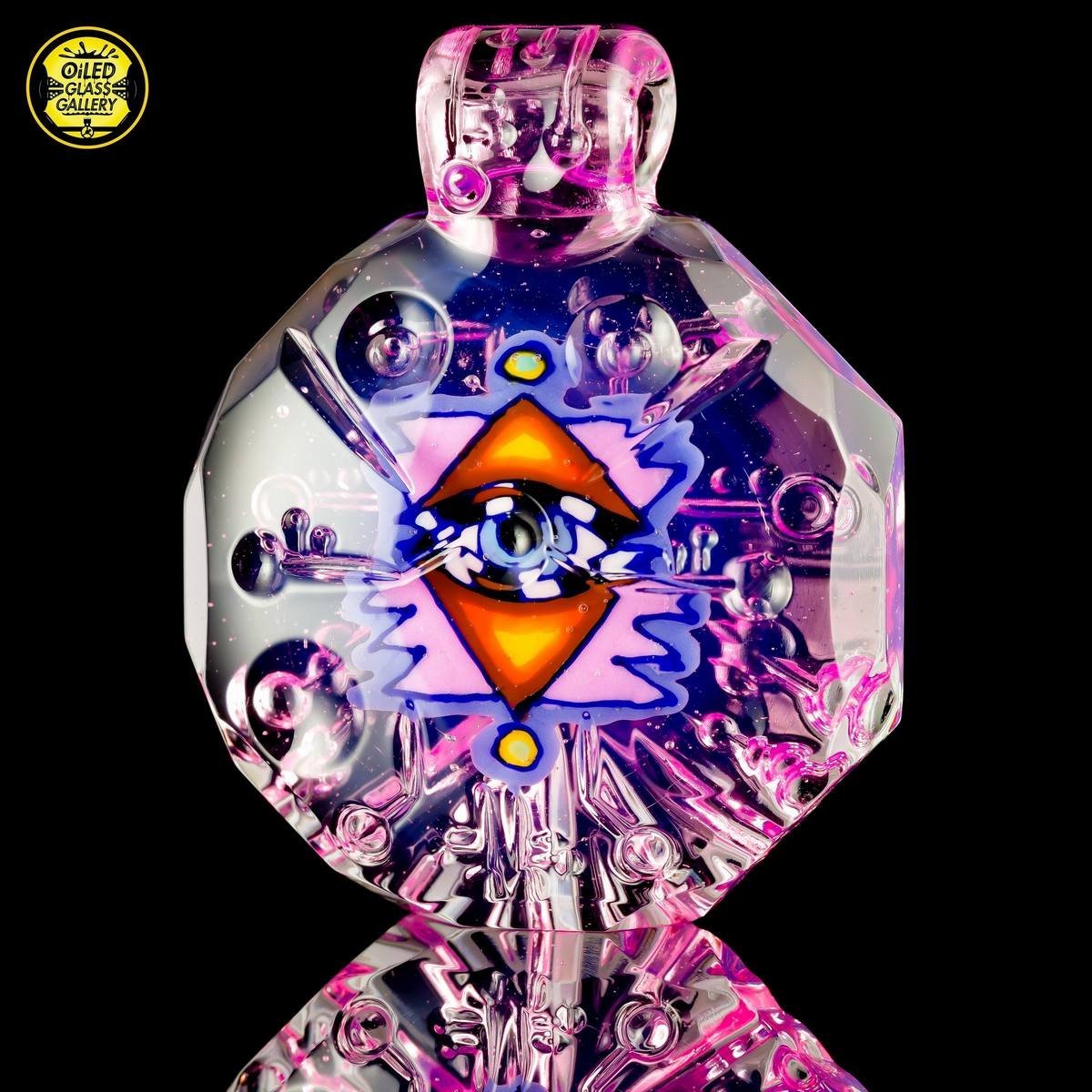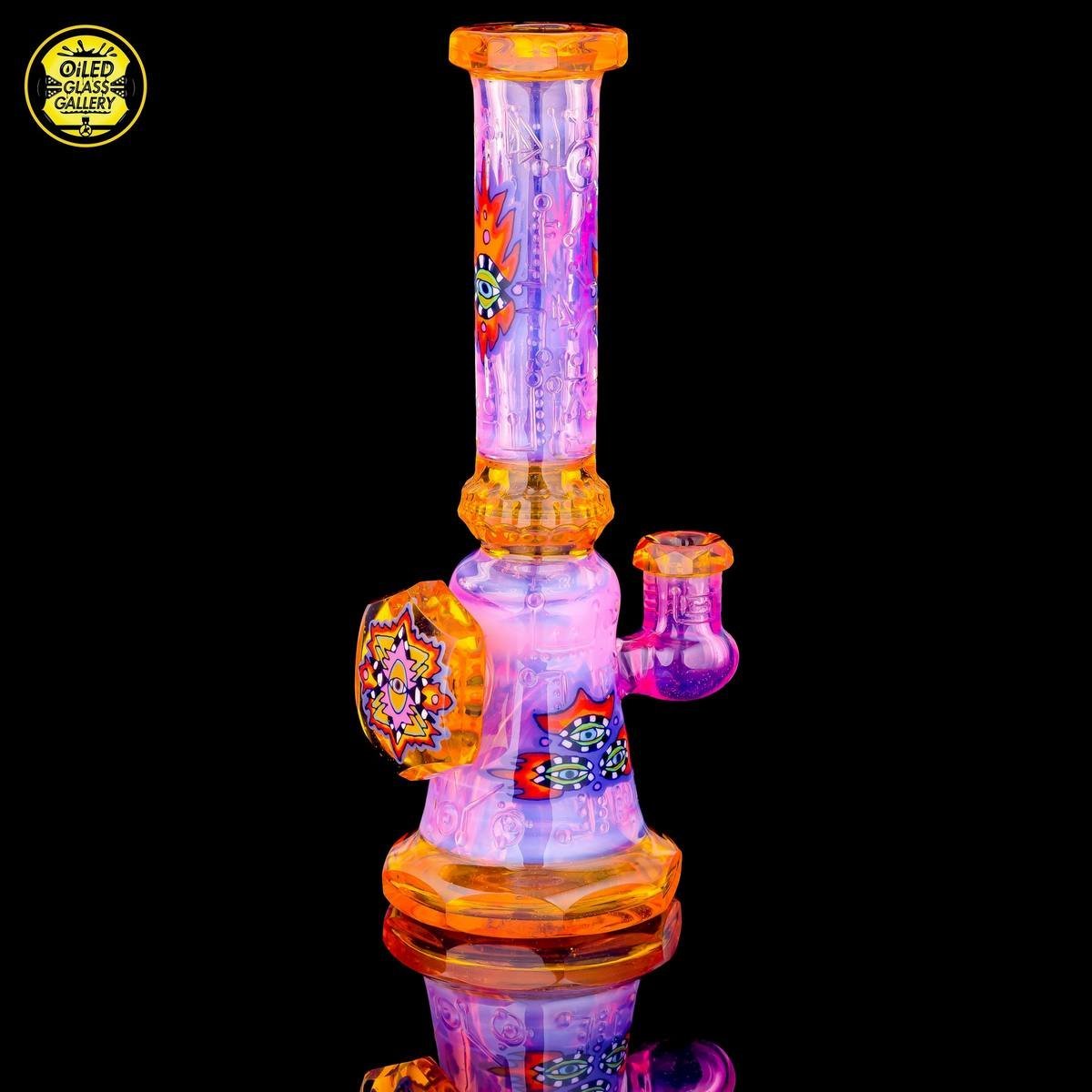 2018 10mm 8.5in CFL Terps x Voodoo “3rd Eye” Tube set from the facet king Murdoc Glass and flip god BMFT. This piece represents visions they both had and were able to pull out of their hearts and minds put into this piece. Made over multiple hot and cold working sessions out of Glass Alchemy Voodoo and Terps. They both shared assembly and cold working duties and came out with this awesome result. This piece will come with a matching CFL Voodoo faceted pendant and comes shipped in an Orange Pelican 1400 case.