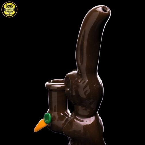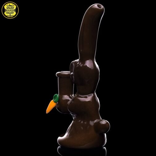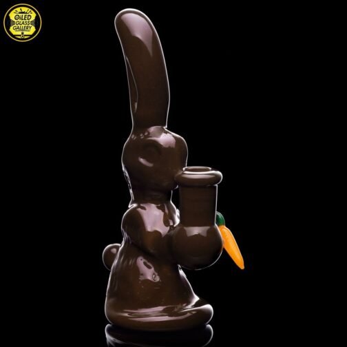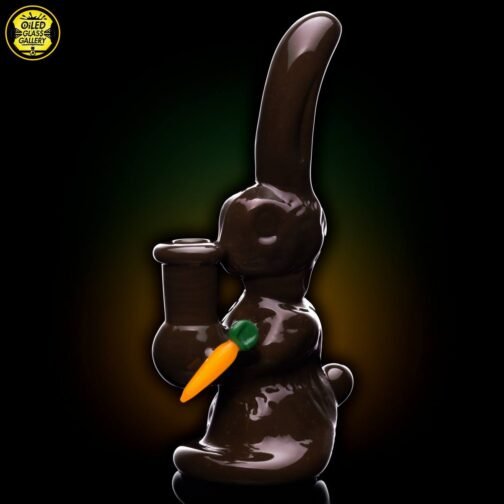 2021 10mm 6in Chocolate Bunny Tube made of Glass Alchemy Chocolate Crayon featuring a beautiful carrot mounted on the side.