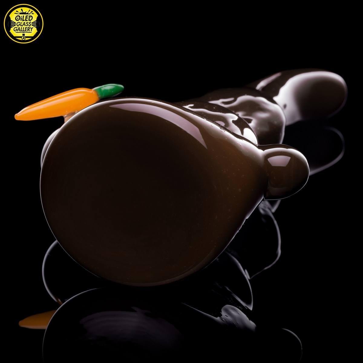 2021 10mm 6in Chocolate Bunny Tube made of Glass Alchemy Chocolate Crayon featuring a beautiful carrot mounted on the side.