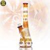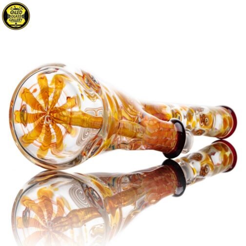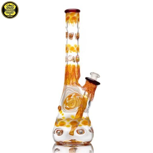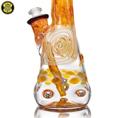 2021 10mm 9.5in Clear Fumed Rainbow linework Skull Millefiori Beaker Tube with Red Elvis lipwraps. Features a matching fumed 3-hole removable downstem and 14 embedded skull millefiori.