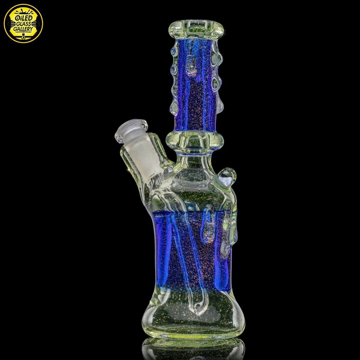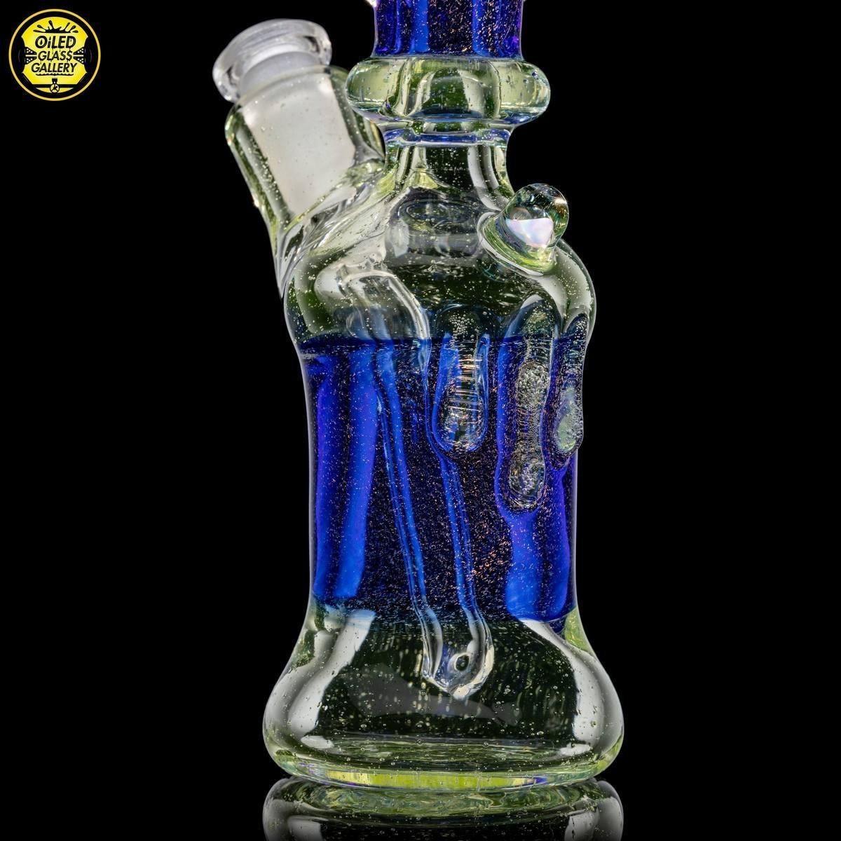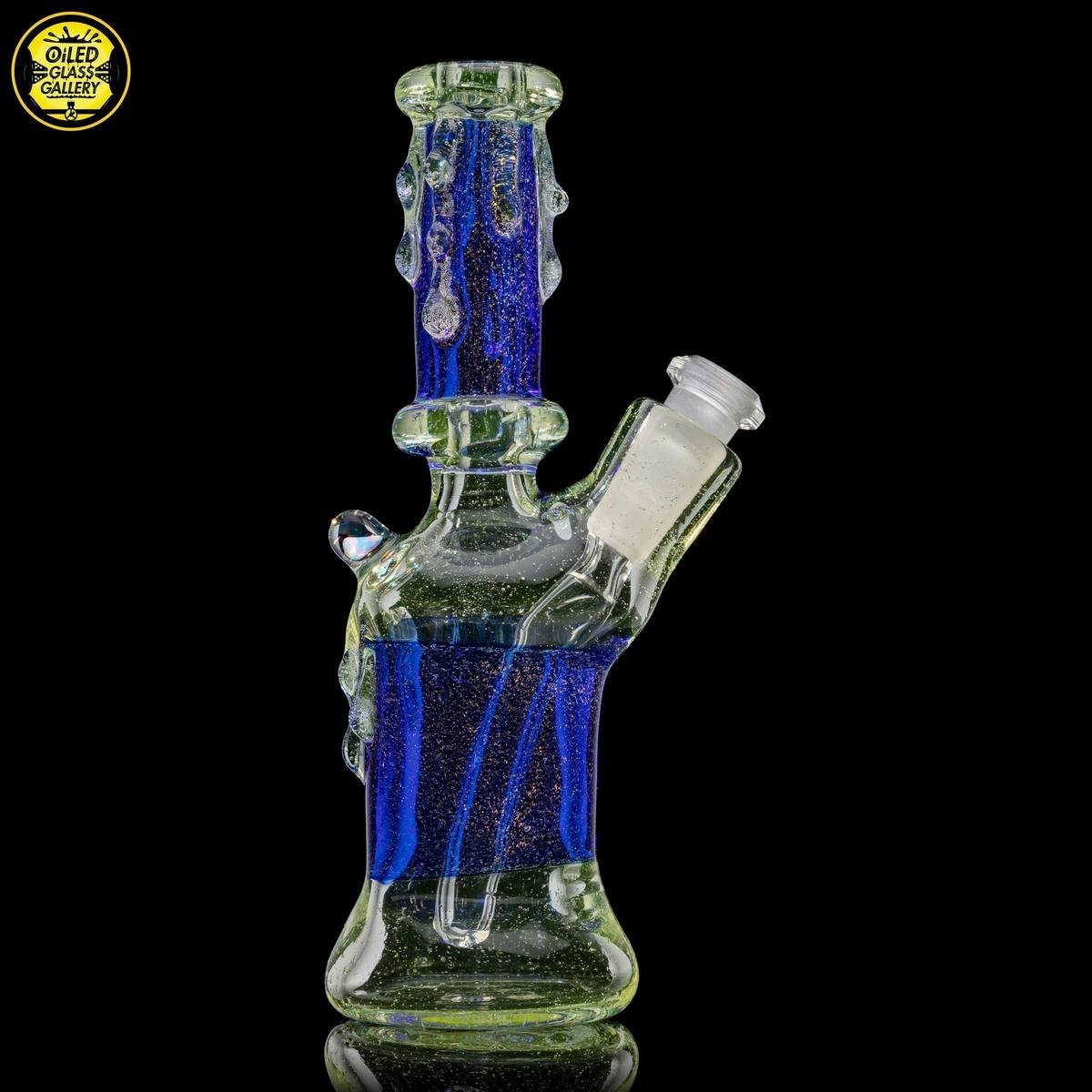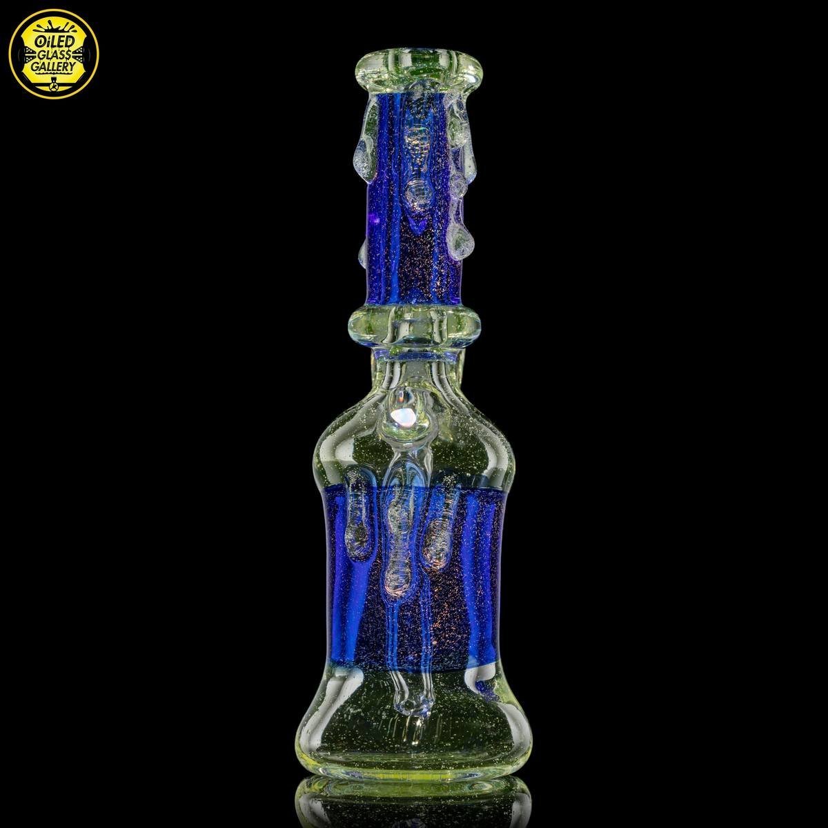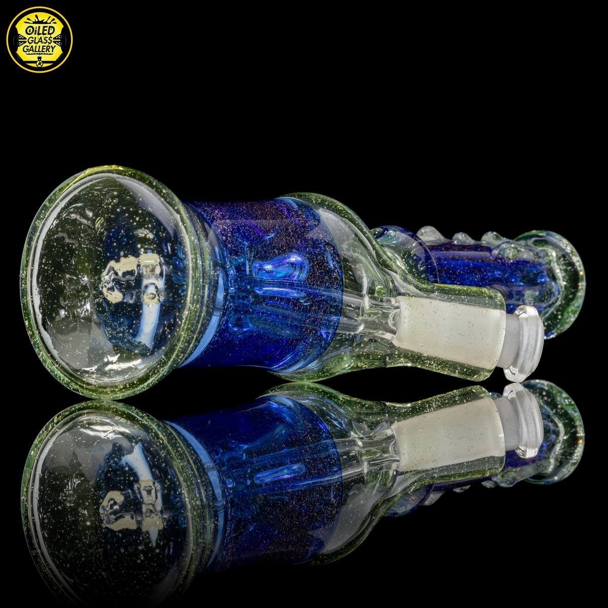 2021 10mm 6.5in UV Dichroic Can Tube set made with Northstar Glass UV Nova and Cobalt with dichroic sections. Features an encased opal mib and comes with a 2-hole removable downstem.