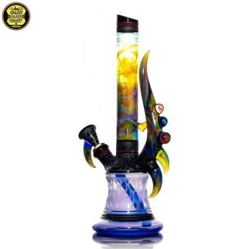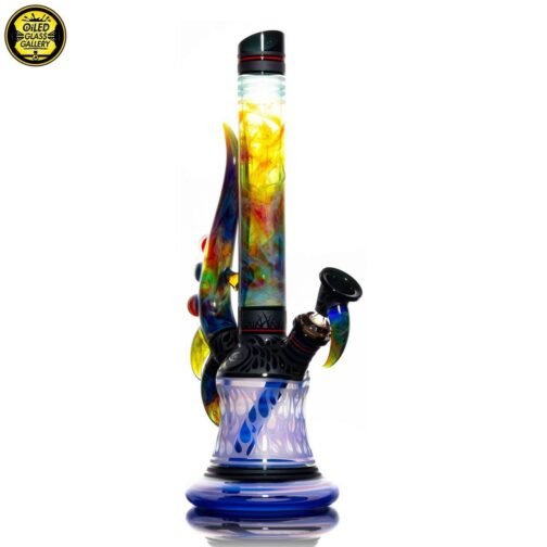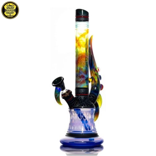 2024 10mm 10.75in “Ethereal One” Color Collider tube set made of custom mixed colors featuring sandblasting on the sides, the base, the slide and the 3-hole downstem. Also has a slanted mouth piece along and a massive horn mounted on the back with 3 mibs and 2 horns mounted on it. This pieces comes shipped in an Orange Apache 2800 case.