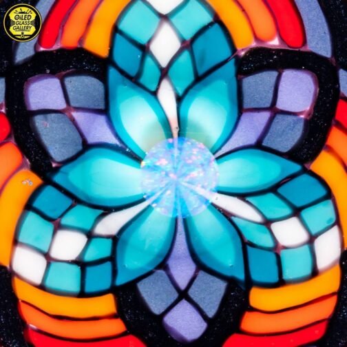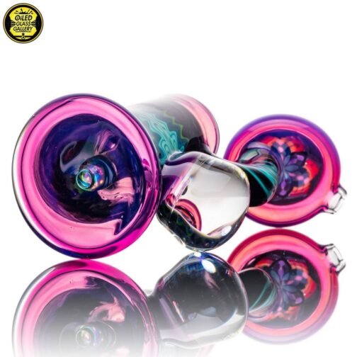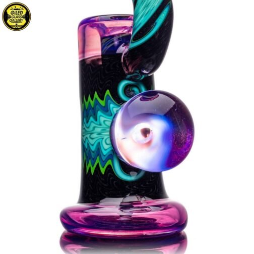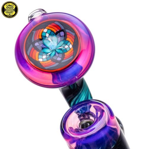 2021 10mm 6.5in Bubbler made of Molten Aura Royal Jelly, fillacello and wig wag sections. Features an encased opal coin with floating trillion opal mib mounted on the back, encased opal in the perk, and an encased opal on the fillacello mouthpiece. Comes shipped in a Black Apache 1800 case.