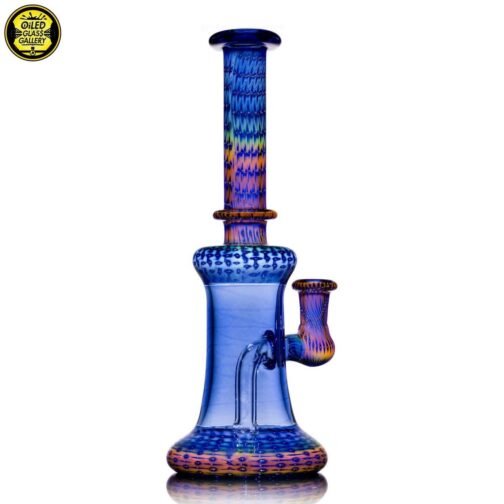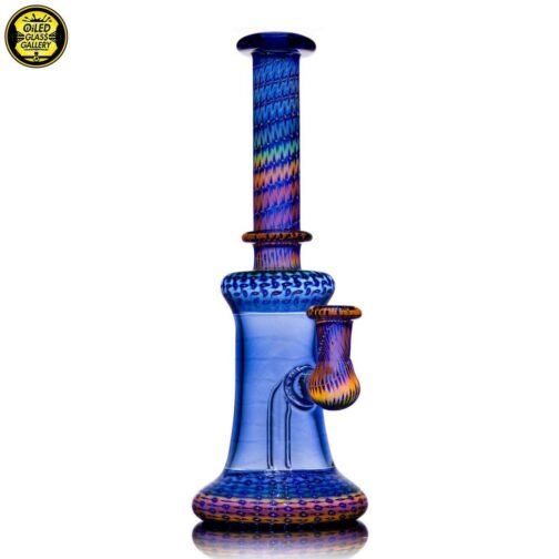 2021 10mm 8in Fumed Bubbletrap banger hanger tube set made of Northstar Glass Cobalt Blue and Northstar Glass Light Cobalt sections featuring a matching bubble cap.