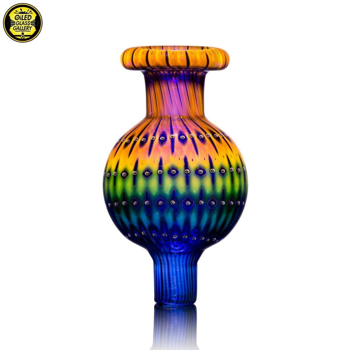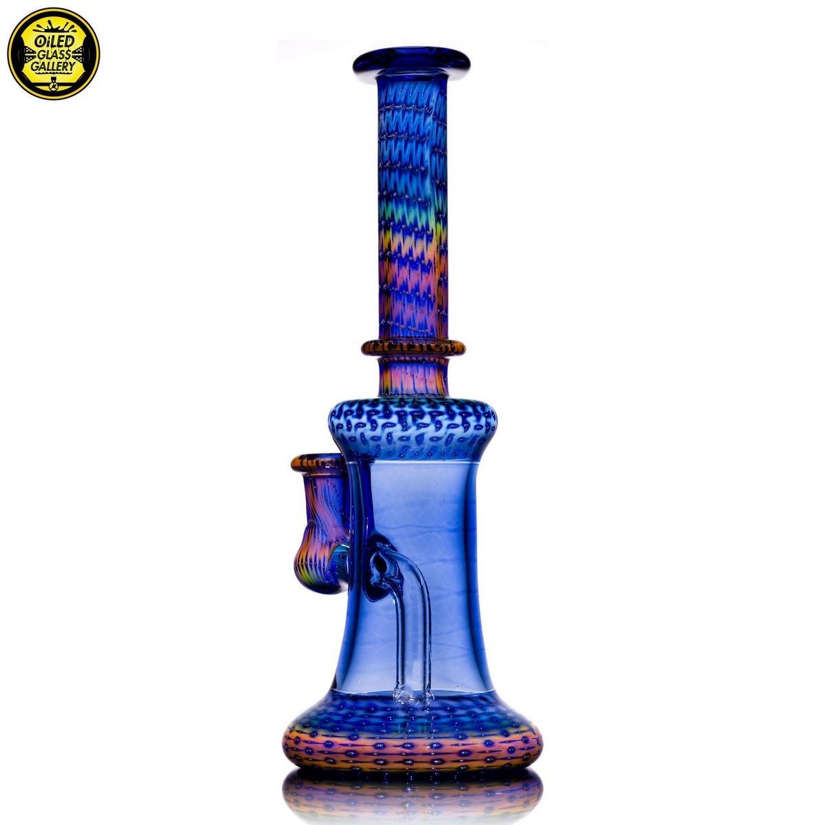 2021 10mm 8in Fumed Bubbletrap banger hanger tube set made of Northstar Glass Cobalt Blue and Northstar Glass Light Cobalt sections featuring a matching bubble cap.
