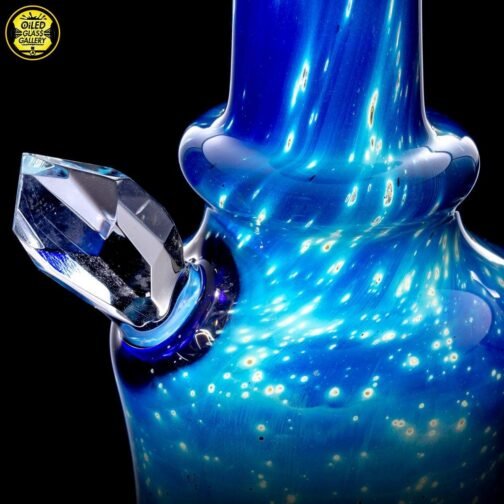 2020 10mm 6.5in Fumed Space Tech Banger Hanger Tube set. Has a beautiful faceted crystal mounted on the back and comes with a matching 25mm encased opal top bubble cap.