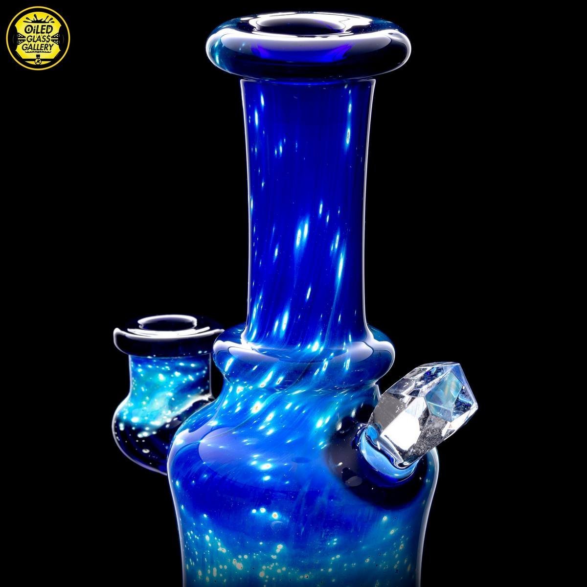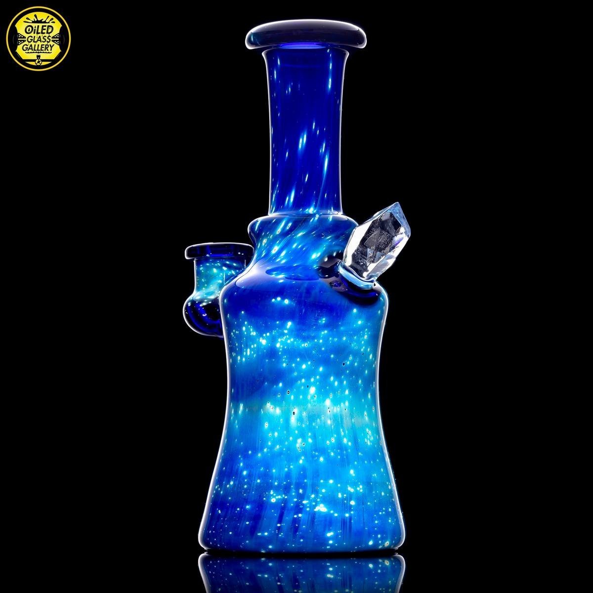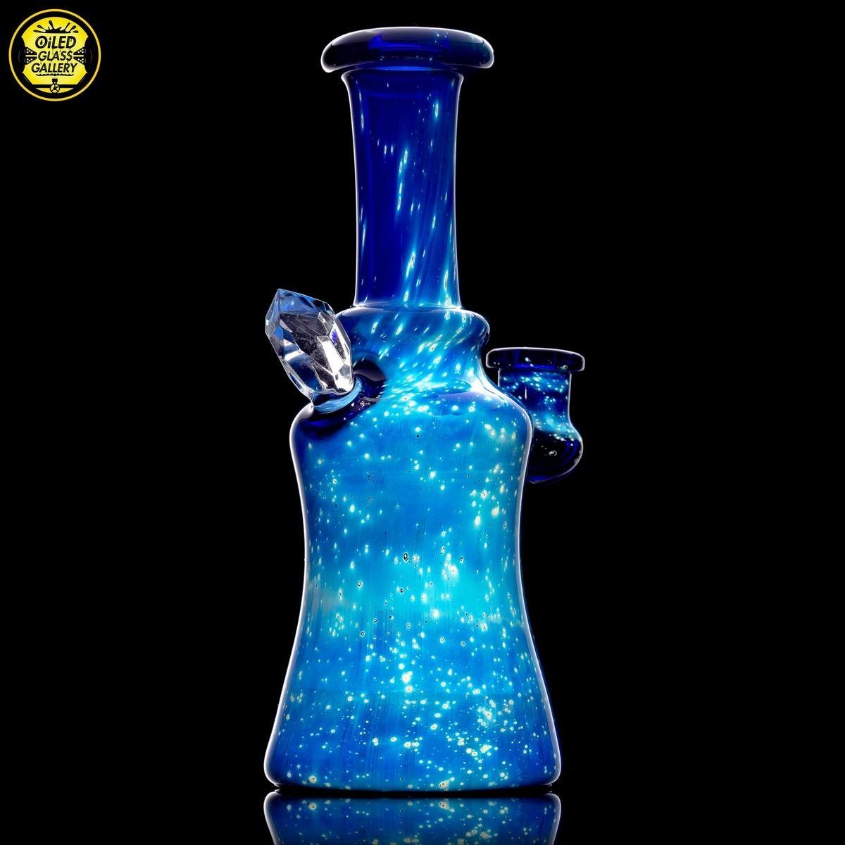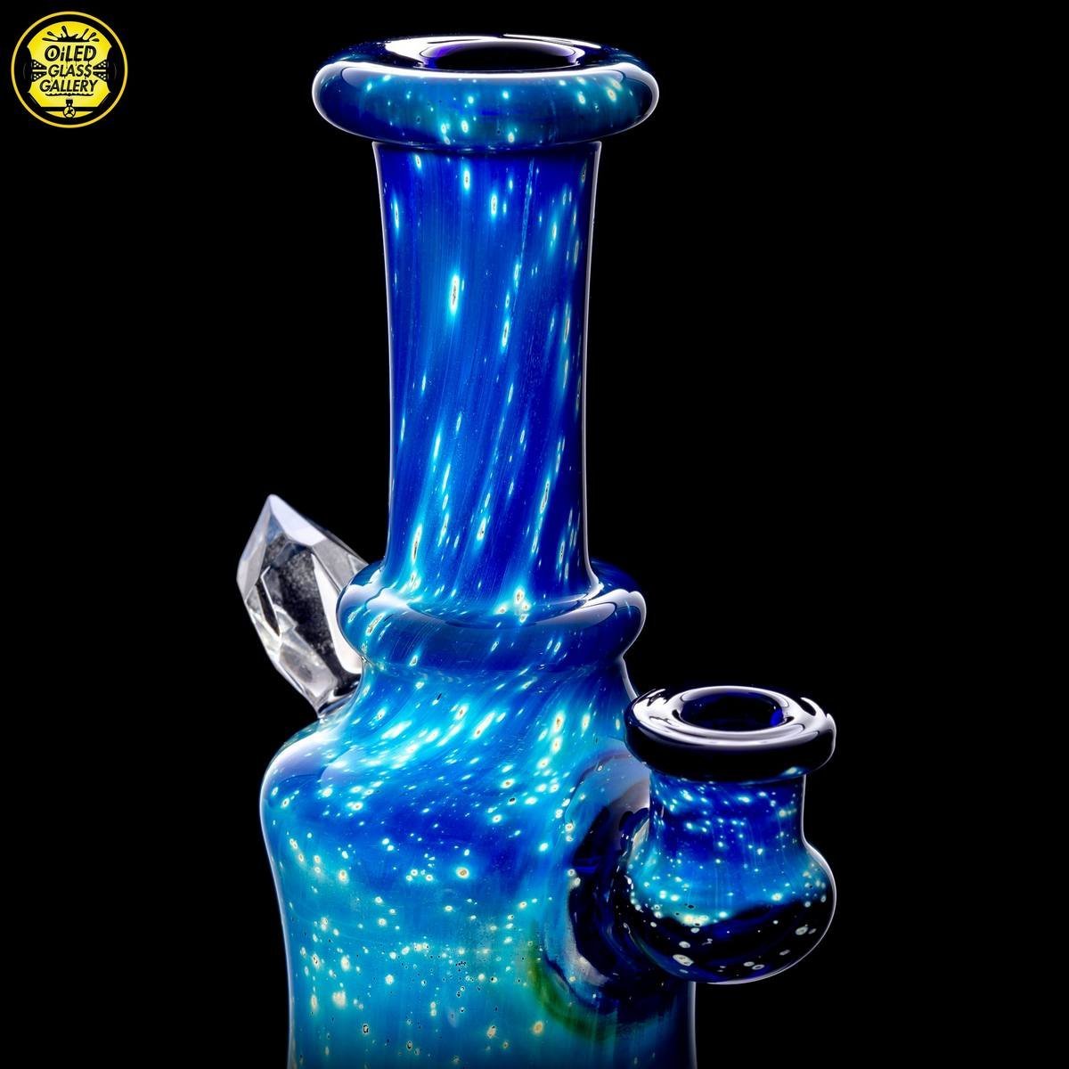 2020 10mm 6.5in Fumed Space Tech Banger Hanger Tube set. Has a beautiful faceted crystal mounted on the back and comes with a matching 25mm encased opal top bubble cap.