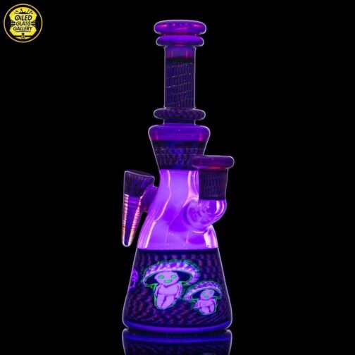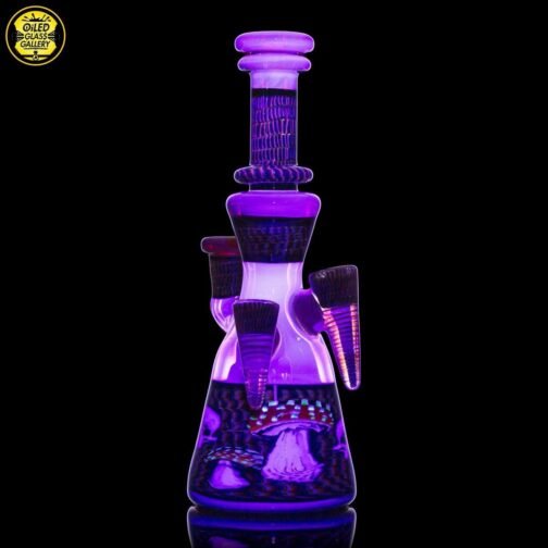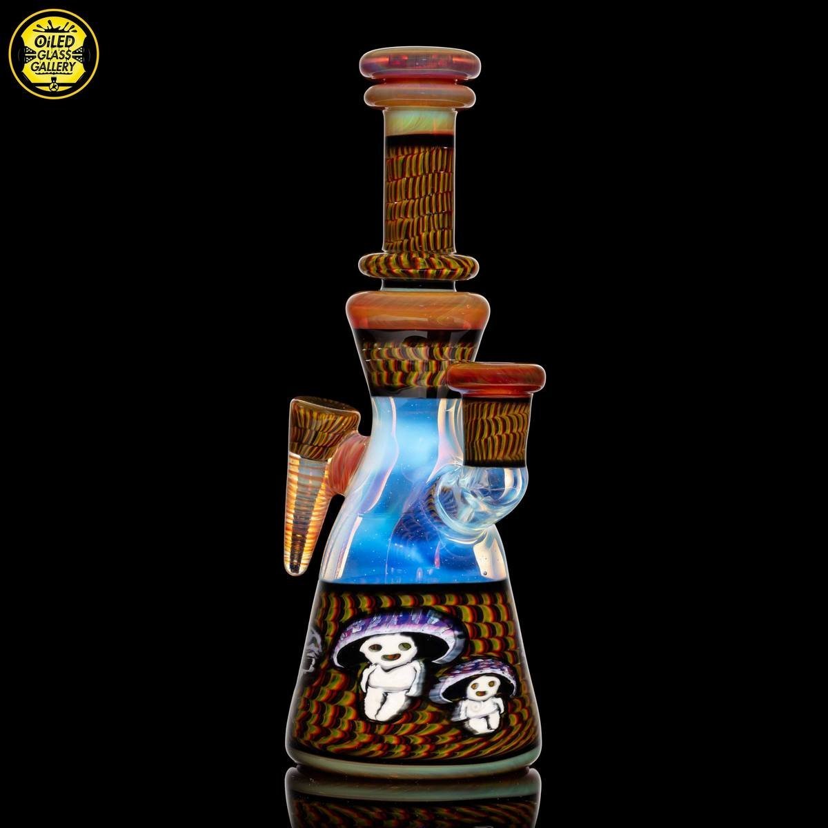 2023 10mm 8in UV Latticino Cane Tube made with Trautman Art Glass Sasha’s Oil Slick and Molten Aura Moonstone featuring millefiori all around the base with horn attachments. Comes with a matching pendant, bubble cap, and shipped in a Yellow Pelican 1200 case.