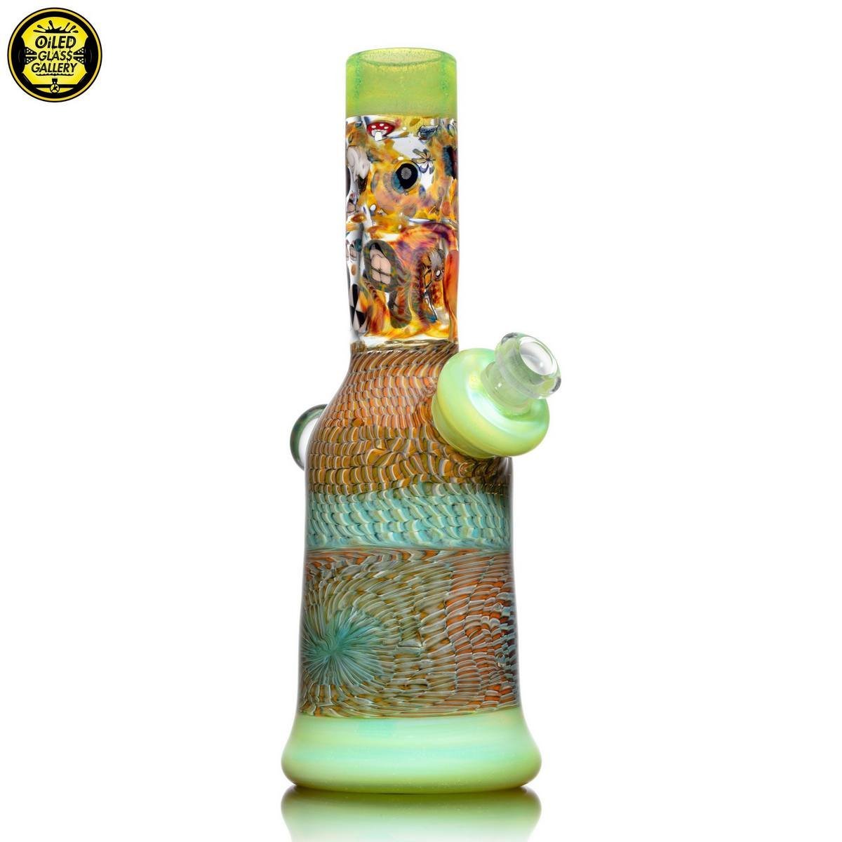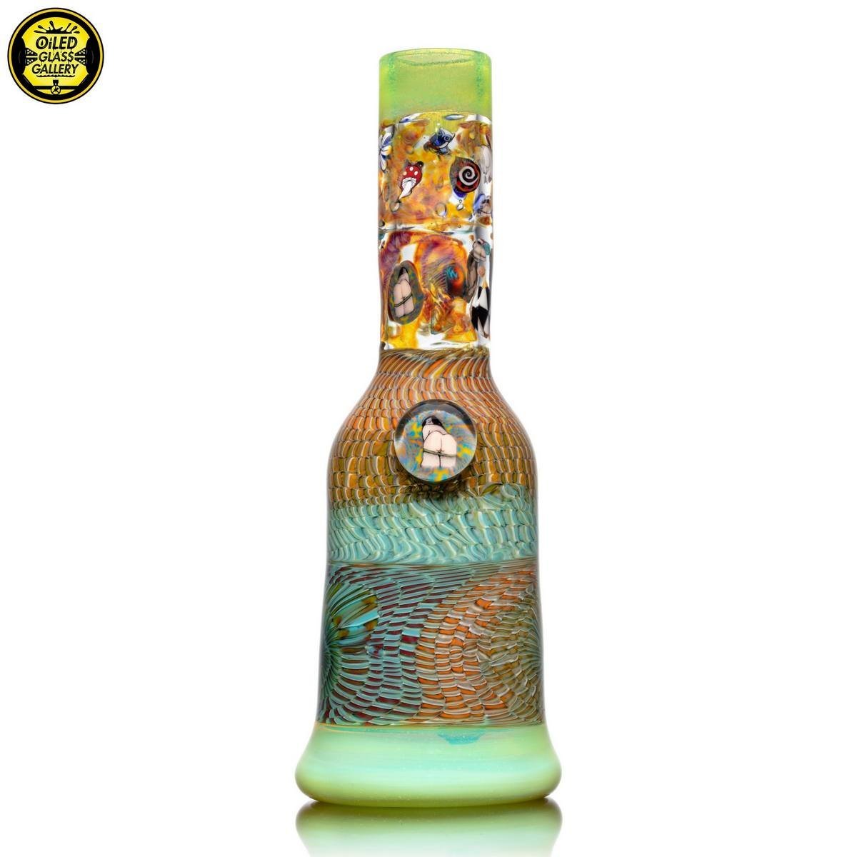 2021 10mm 7.75in Millefiori Lady Bug Can Tube set made with latticino coilpot, Trautman Art Glass Slyme and millefiori sections featuring a 2-hole removable downstem, all shipped in an Apache hard case.