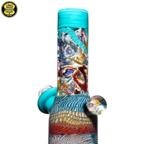 2021 10mm 7.5in Millefiori Sealife Can Tube set made with latticino coilpot, Glass Alchemy Agua Azul and millefiori sections featuring a 2-hole removable downstem, all shipped in an Apache hard case.