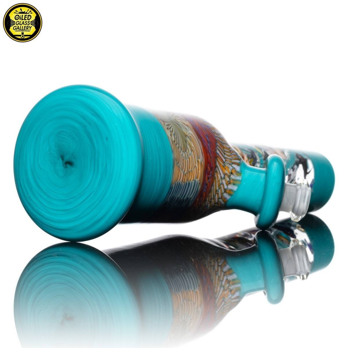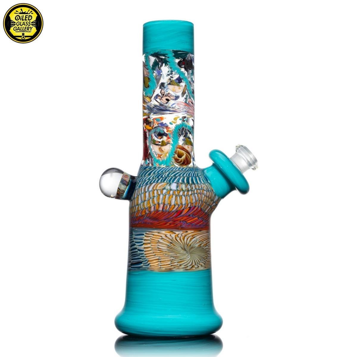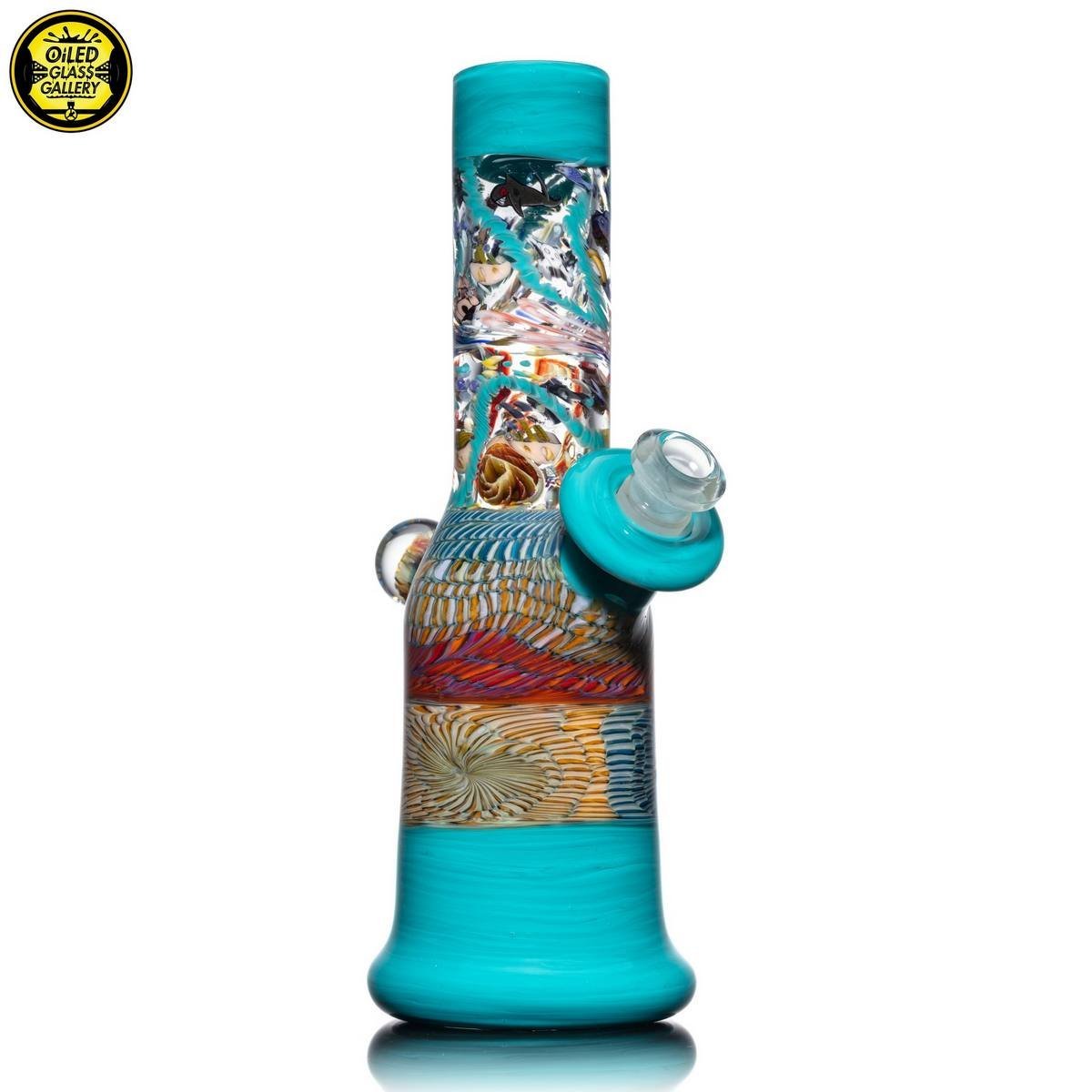 2021 10mm 7.5in Millefiori Sealife Can Tube set made with latticino coilpot, Glass Alchemy Agua Azul and millefiori sections featuring a 2-hole removable downstem, all shipped in an Apache hard case.