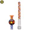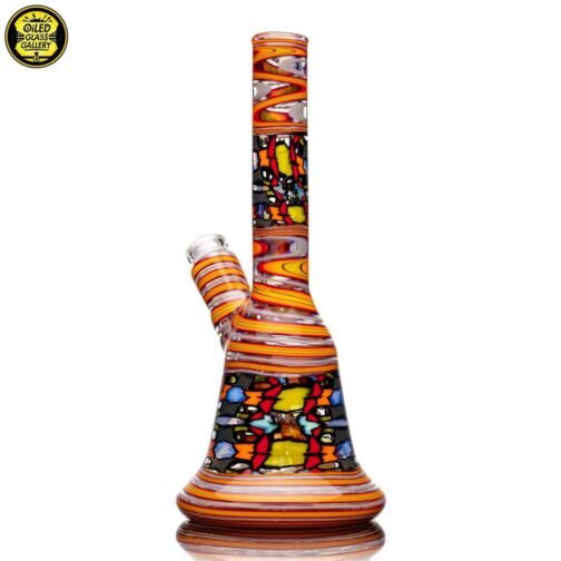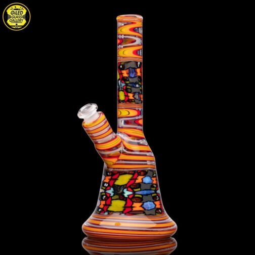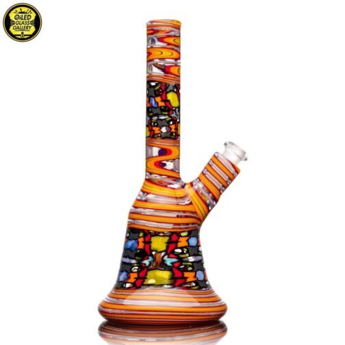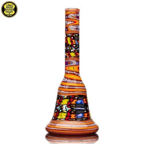 2021 10mm 7.75in Millefiori Chipstack and Fire Linework Beaker Tube set featuring a matching 2-hole removable downstem and bubble cap.