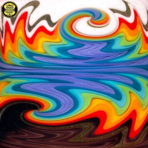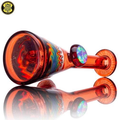 2021 10mm 5.5in Rainbow Wig Wag Mini Tube made of Northstar Glass Pomegranate and Colorado Color Company rainbow tubing with a huge encased opal coin mib on the back. Comes with a matching removable 2-hole signature downstem.