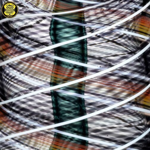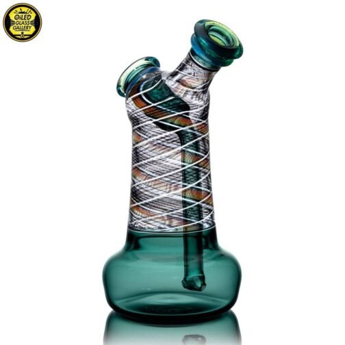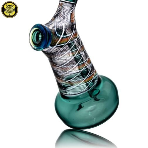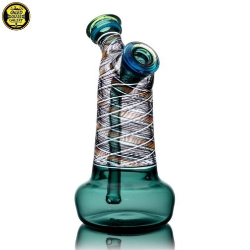 2023 10mm 5.25in Retticello Big Base Bottle Bubbler with 3-hole perk made with Lake Green and Northstar Glass Titan V3 colors.