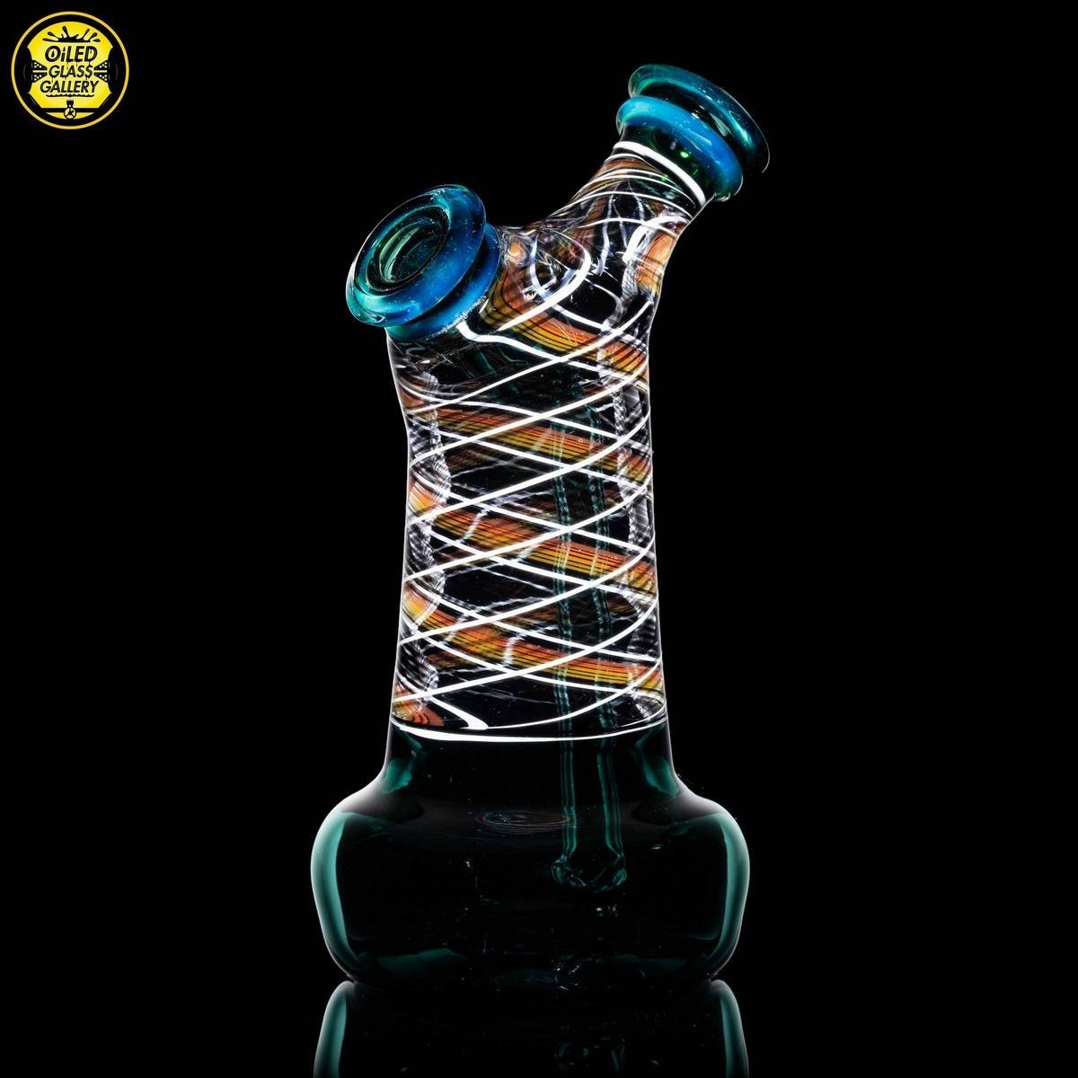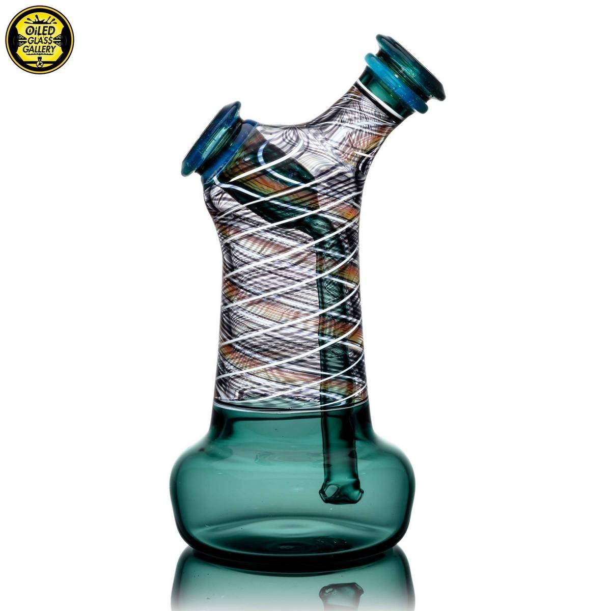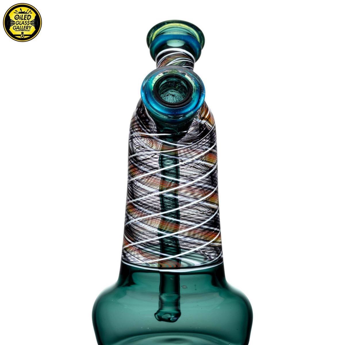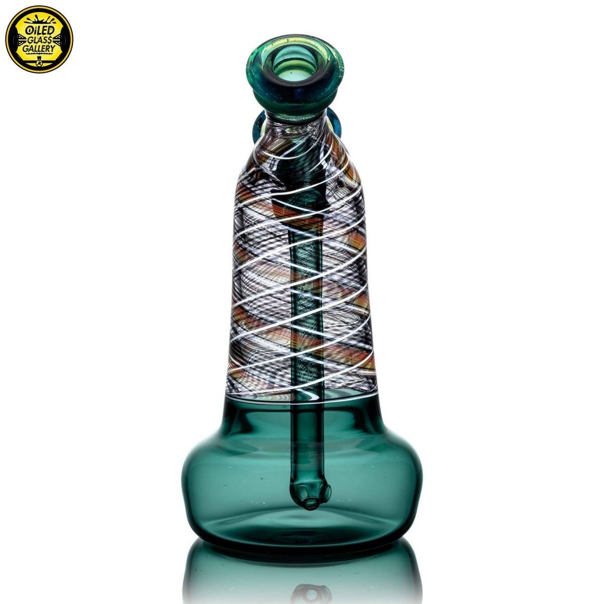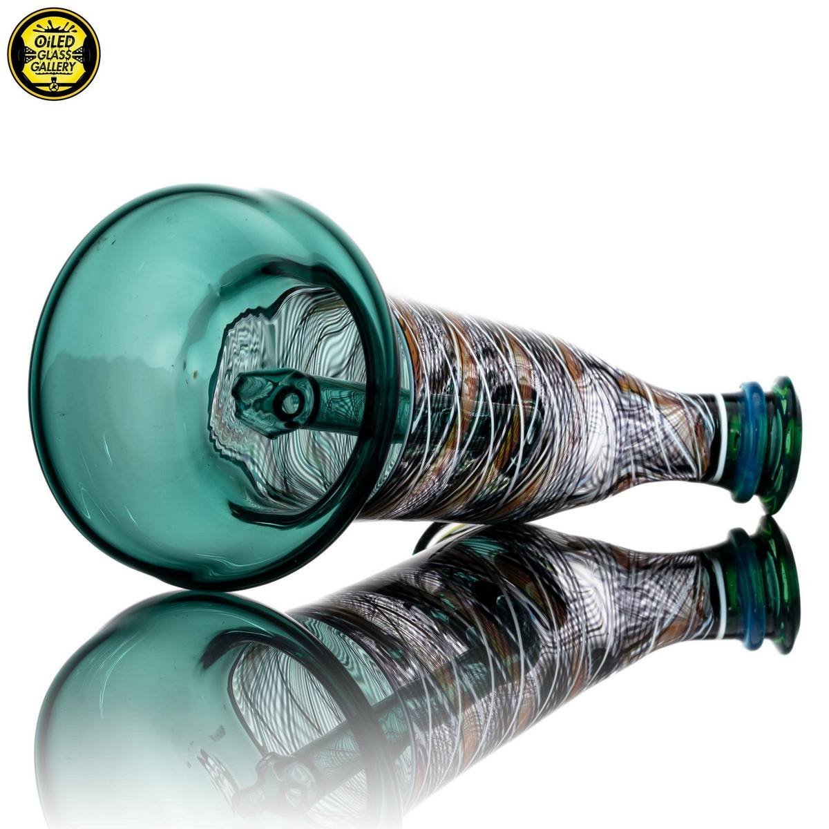 2023 10mm 5.25in Retticello Big Base Bottle Bubbler with 3-hole perk made with Lake Green and Northstar Glass Titan V3 colors.