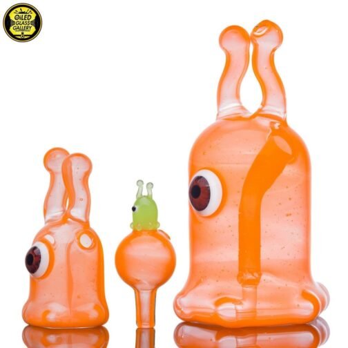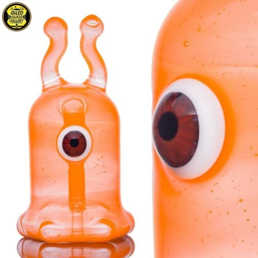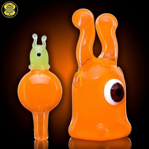 2020 10mm 5.5in Sluggo made with PDX Tubing Company Ghost OJ featuring new style eyes made of Northstar Glass Cherry, a matching bubble cap topped with a Glass Alchemy Double Dose Sluggo, and a large matching Sluggo pendant.