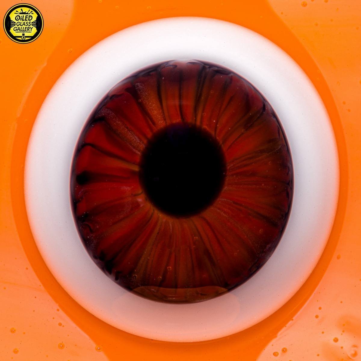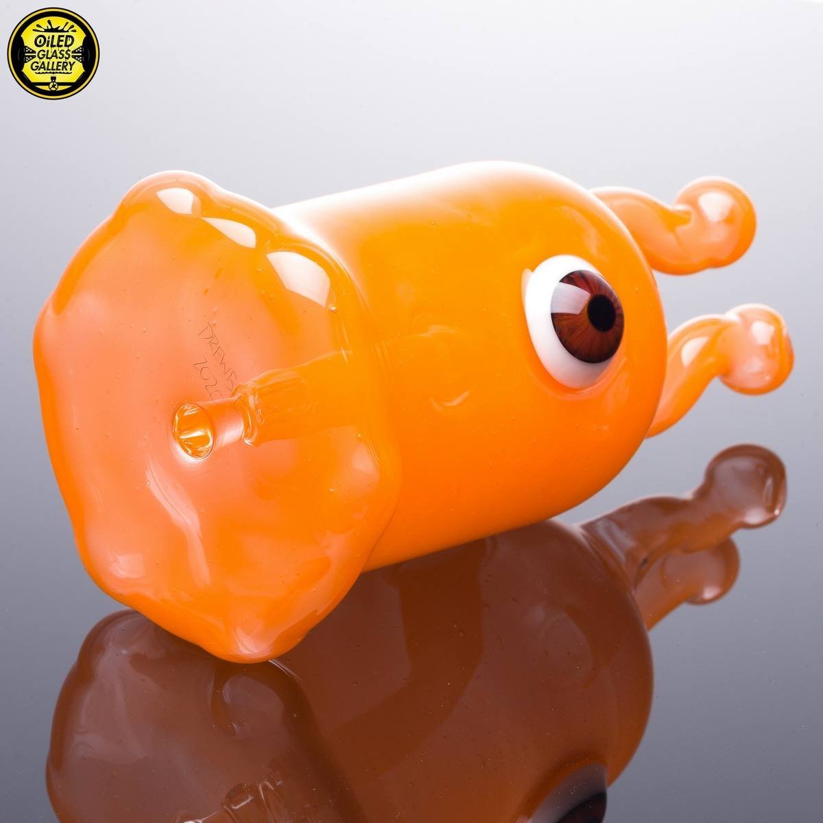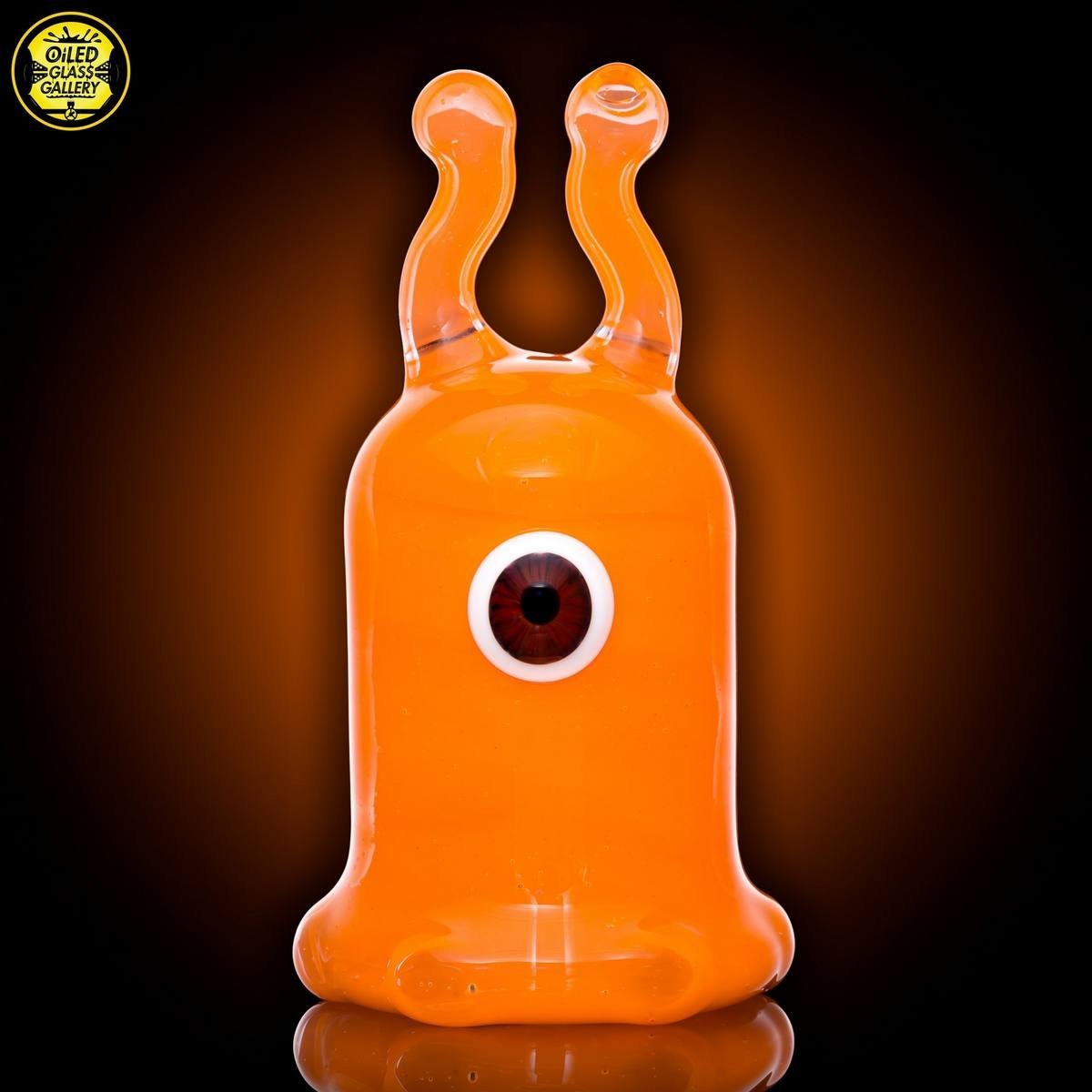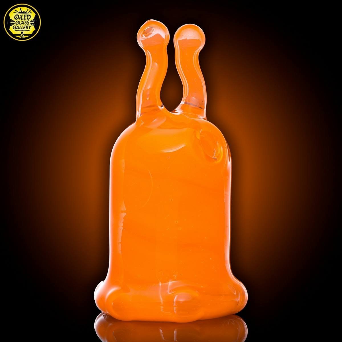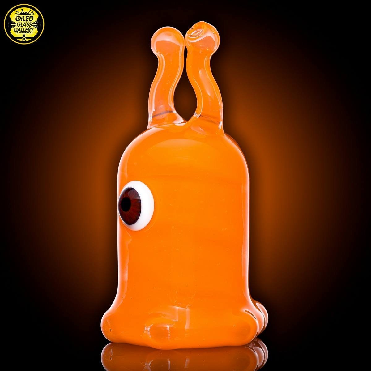 2020 10mm 5.5in Sluggo made with PDX Tubing Company Ghost OJ featuring new style eyes made of Northstar Glass Cherry, a matching bubble cap topped with a Glass Alchemy Double Dose Sluggo, and a large matching Sluggo pendant.