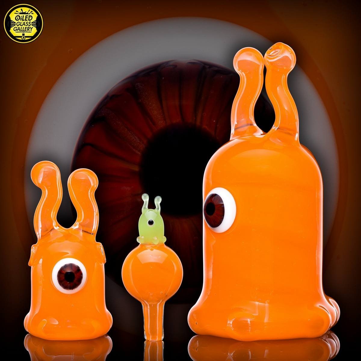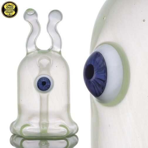 2020 10mm 5.5in Sluggo made with PDX Tubing Company Ghost Antidote featuring new style eyes made of Northstar Glass Purple Urple, a matching bubble cap topped with a Glass Alchemy Double Dose Sluggo, and a large matching Sluggo pendant.