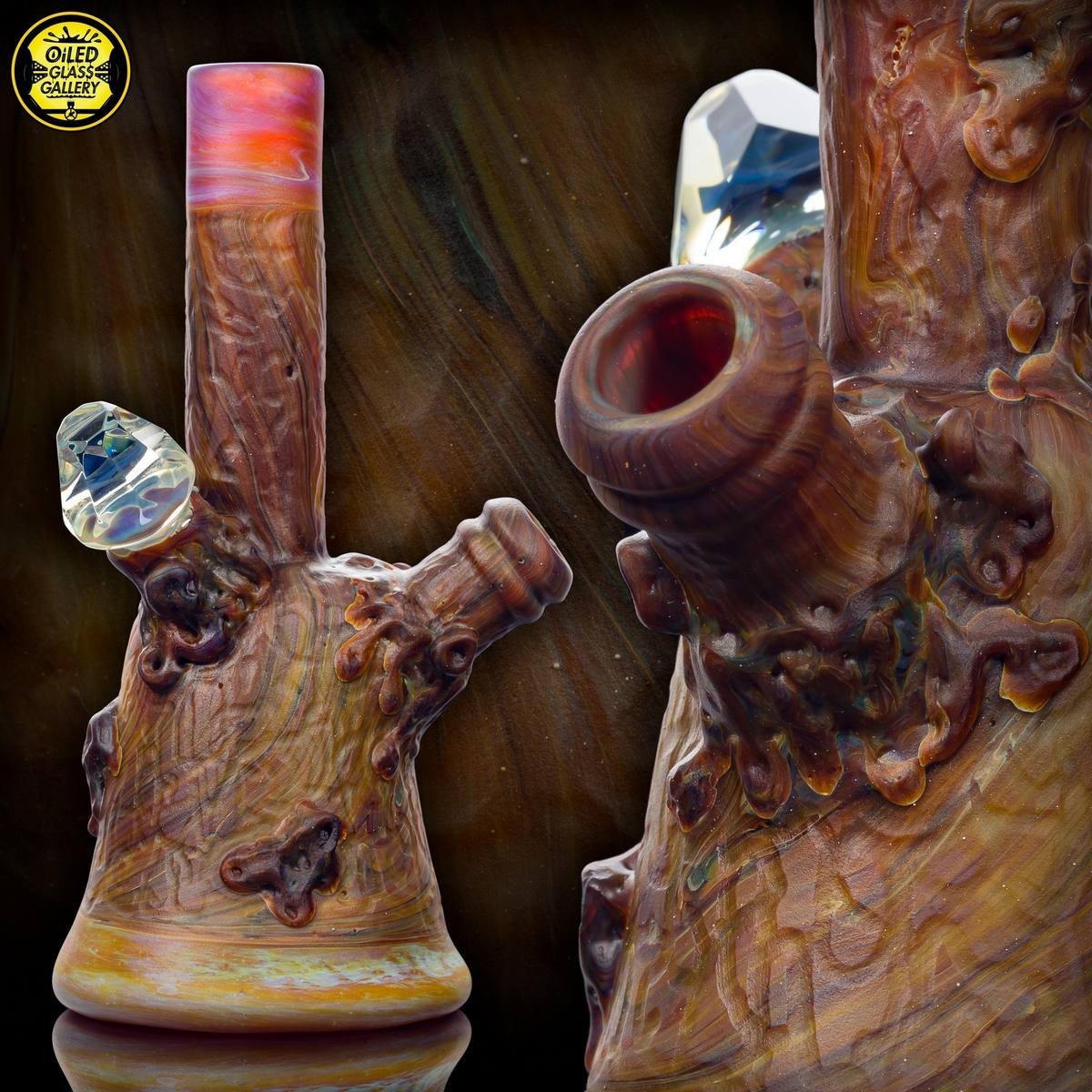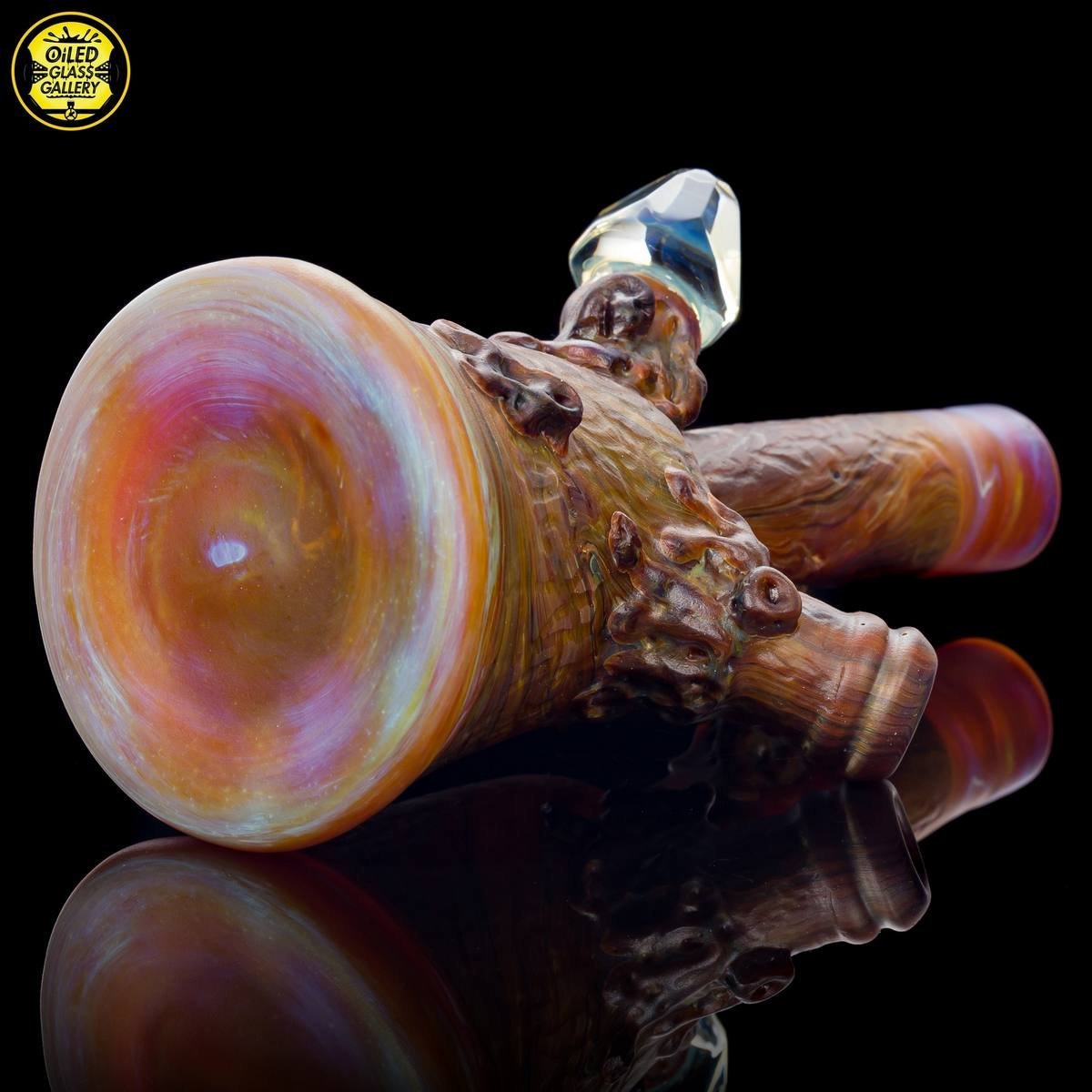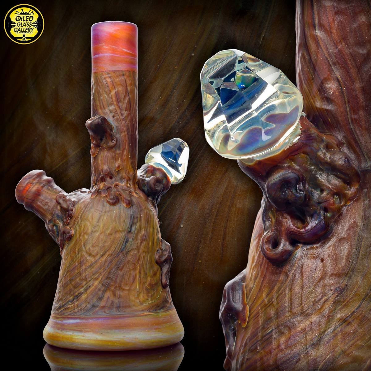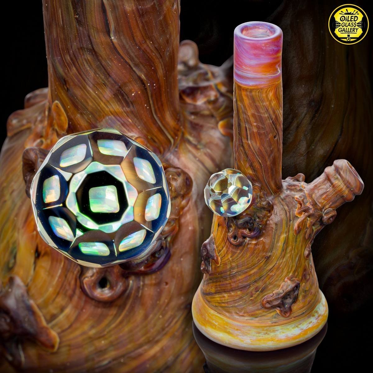2020 10mm 5.25in Tree Tech Tube set made with sandblasted Glass Alchemy Double Passion featuring a faceted opal encased mib, a matching dabber and a bubble cap, all shipped in a Yellow Pelican 1200 case.