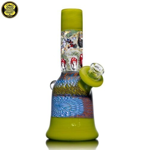2021 10mm 6.75in UV Millefiori Mushroom Can Tube set made with latticino coilpot, Northstar Glass Timber and UV millefiori sections. Comes with a 2-hole removable downstem, all shipped in a Black Apache 1800 hard case.