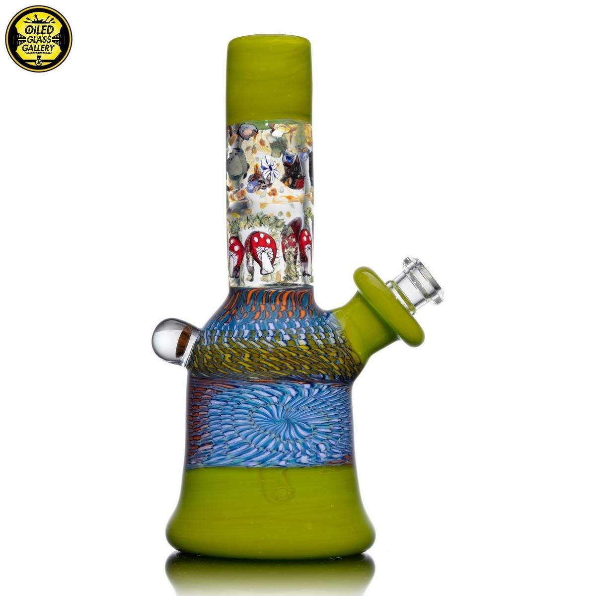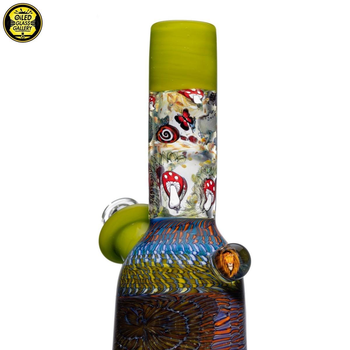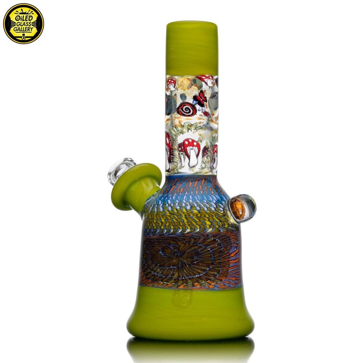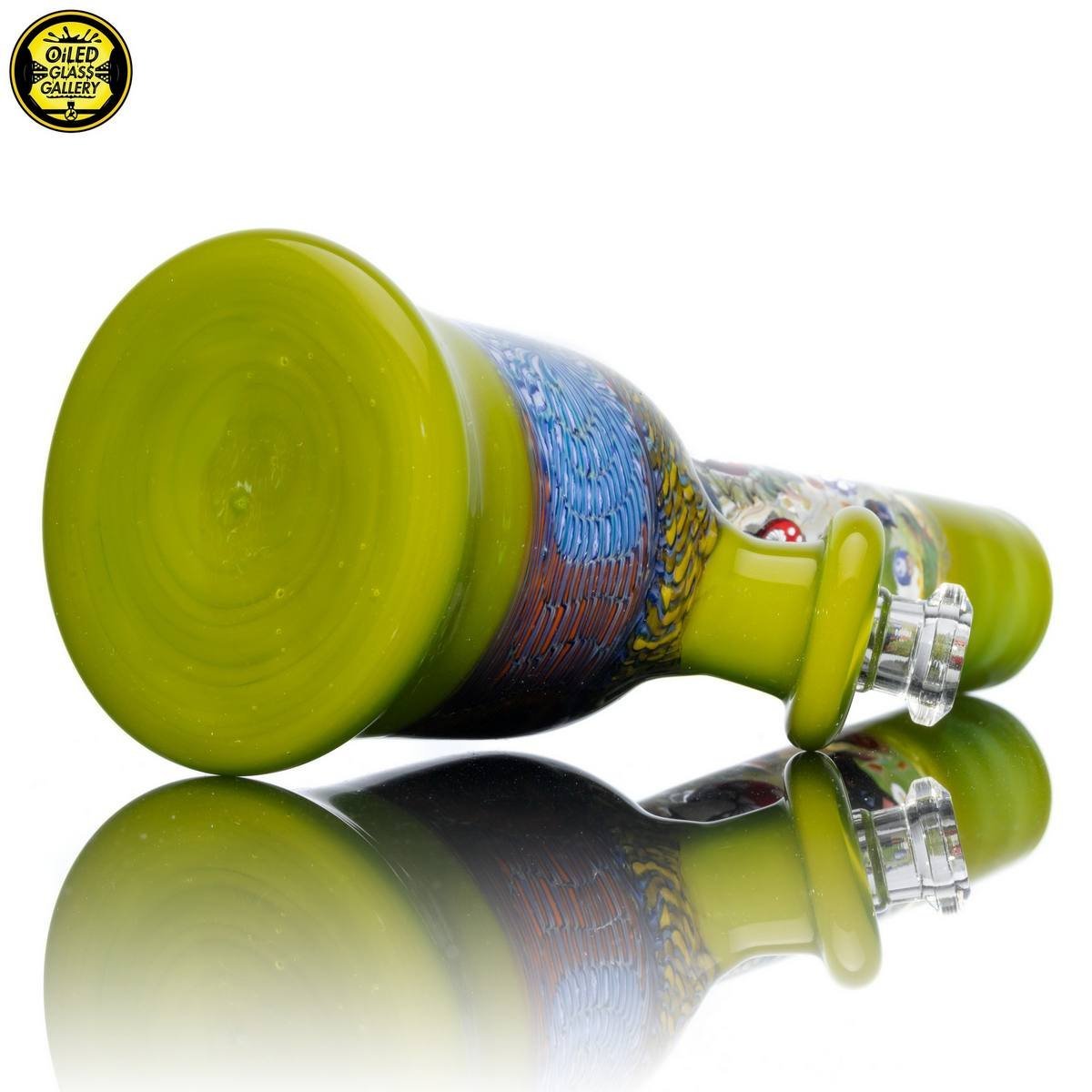 2021 10mm 6.75in UV Millefiori Mushroom Can Tube set made with latticino coilpot, Northstar Glass Timber and UV millefiori sections. Comes with a 2-hole removable downstem, all shipped in a Black Apache 1800 hard case.