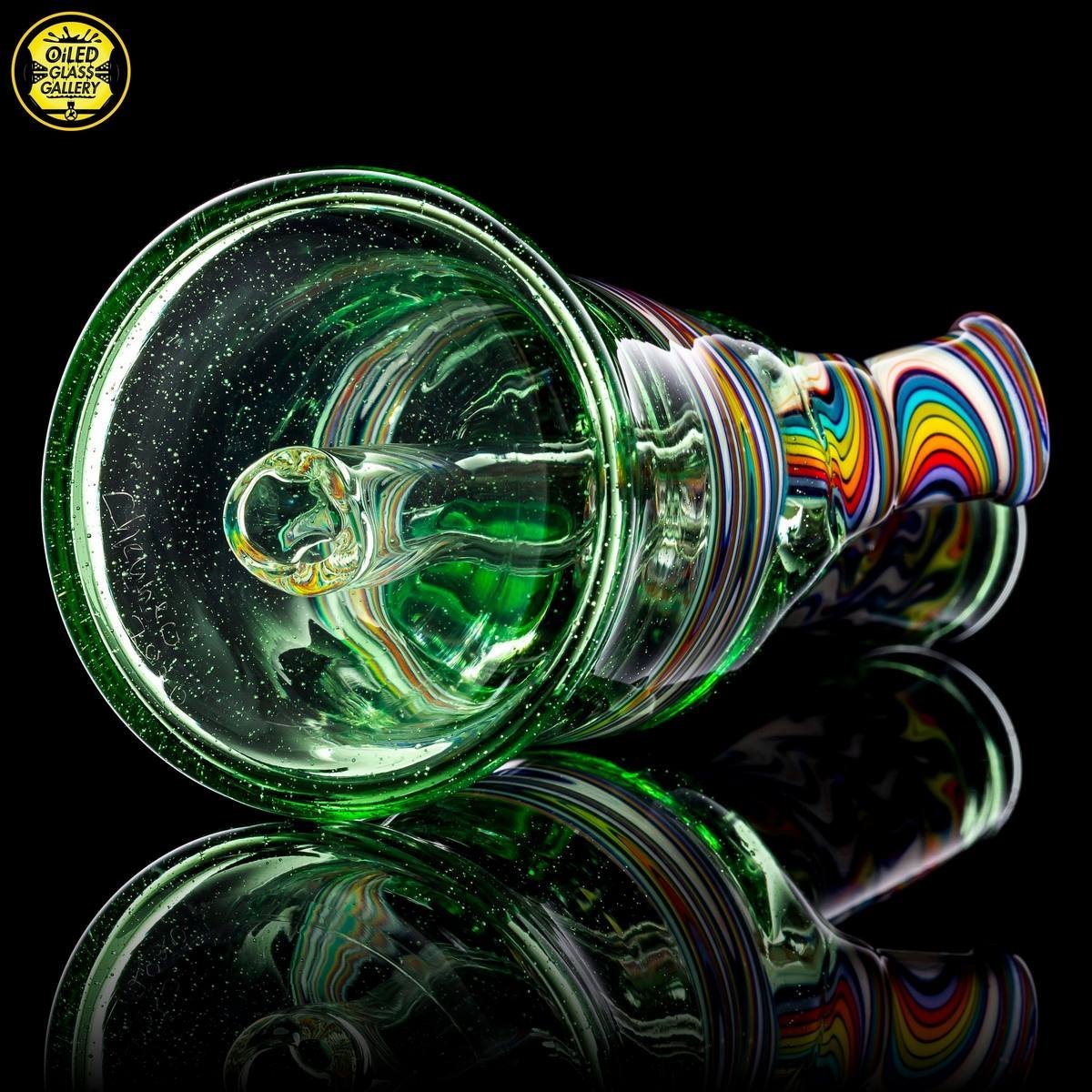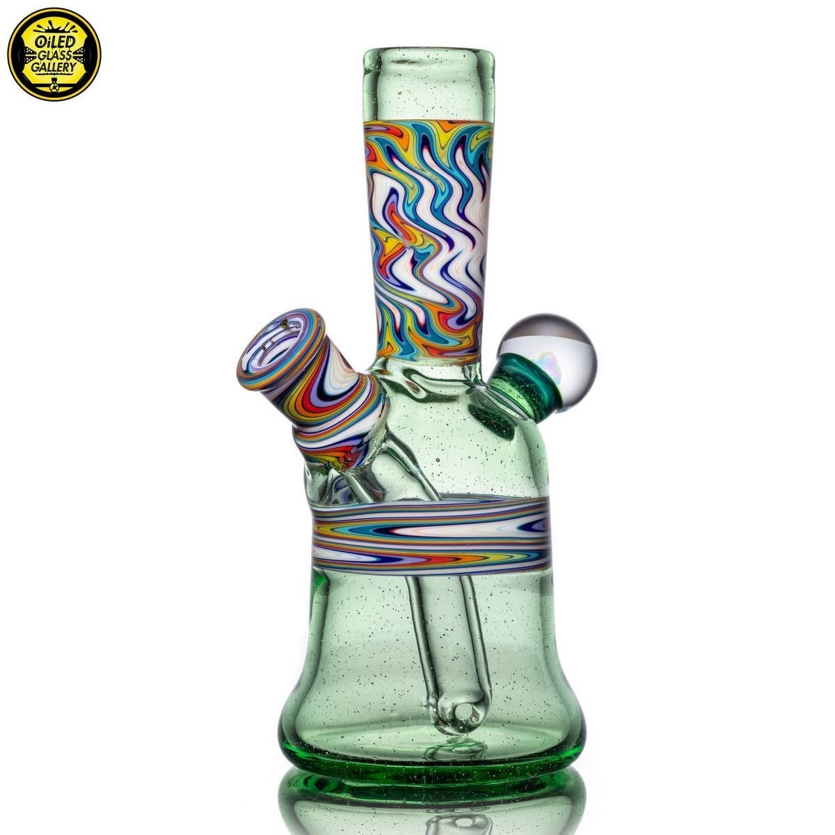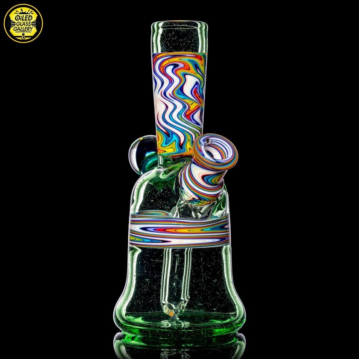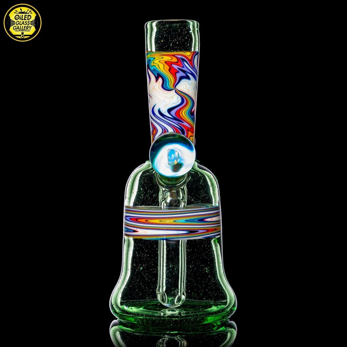 2020 10mm 5.25in Wig Wag Tube set made of Glass Alchemy Hateraid and Rainbow with White linework sections. Features an encased Profound Glass opal mounted on the back, a matching bubble cap, and a pendant.