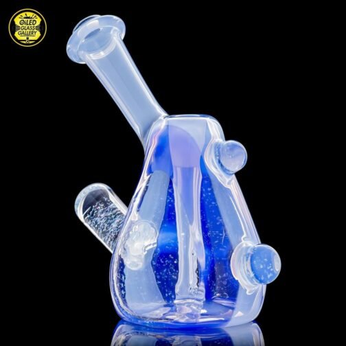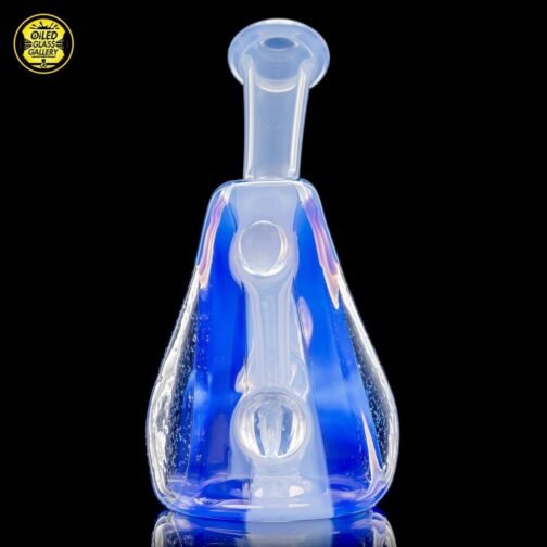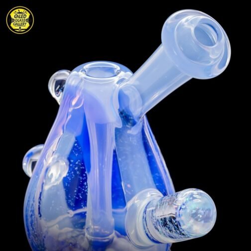 2020 10mm 5in Window Ripper dewar bubbler made of Glass Alchemy Ether, Molten Aura Neptune, and Grandpa Glass crushed opal tubing. Features an incredibly detailed crushed opal swirl cab on the back and two crushed opal mibs on the front. Comes with a matching 30mm crushed opal bubble cap.