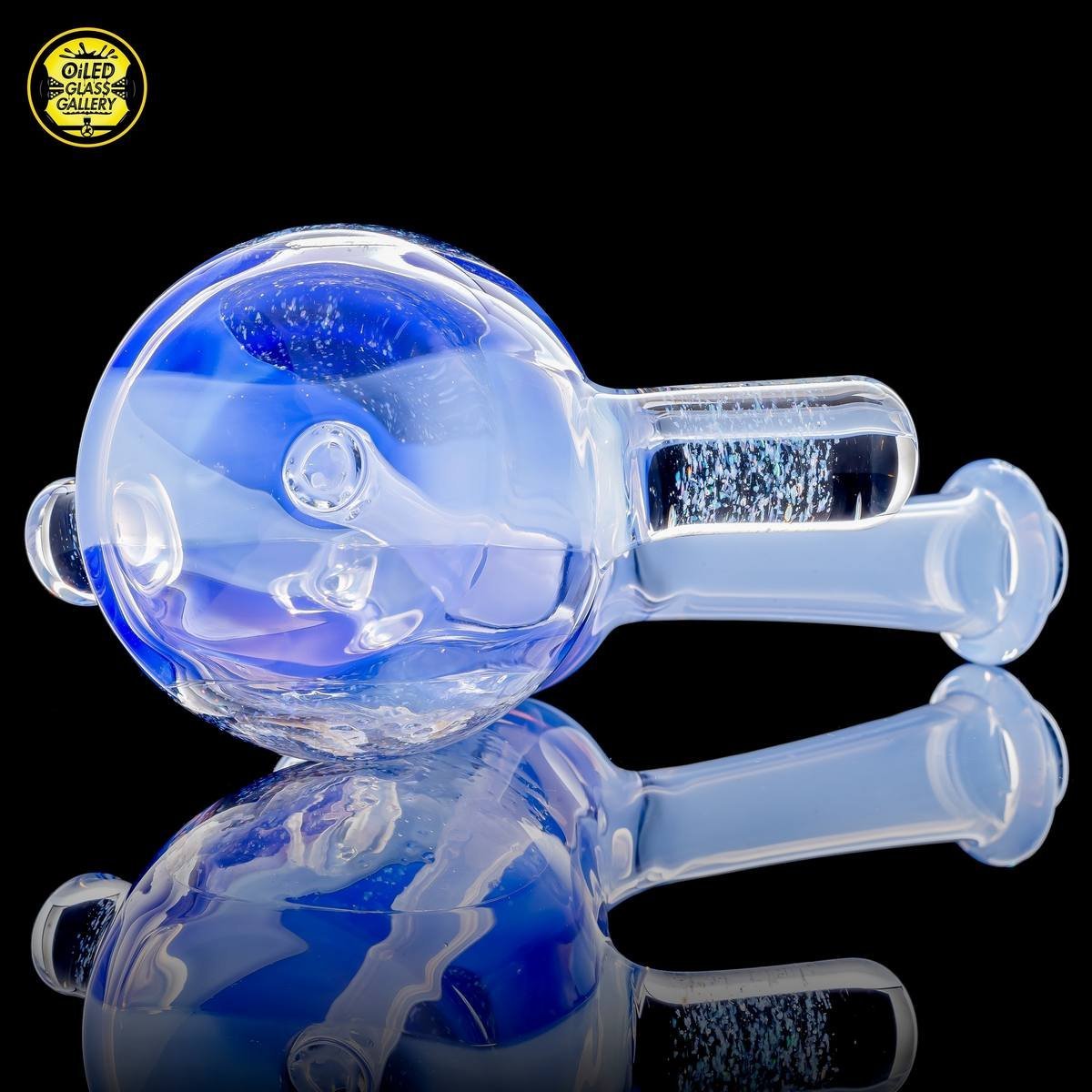 2020 10mm 5in Window Ripper dewar bubbler made of Glass Alchemy Ether, Molten Aura Neptune, and Grandpa Glass crushed opal tubing. Features an incredibly detailed crushed opal swirl cab on the back and two crushed opal mibs on the front. Comes with a matching 30mm crushed opal bubble cap.