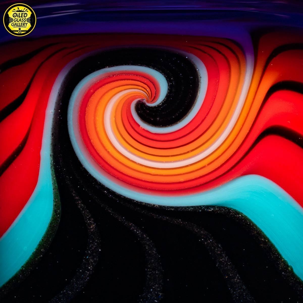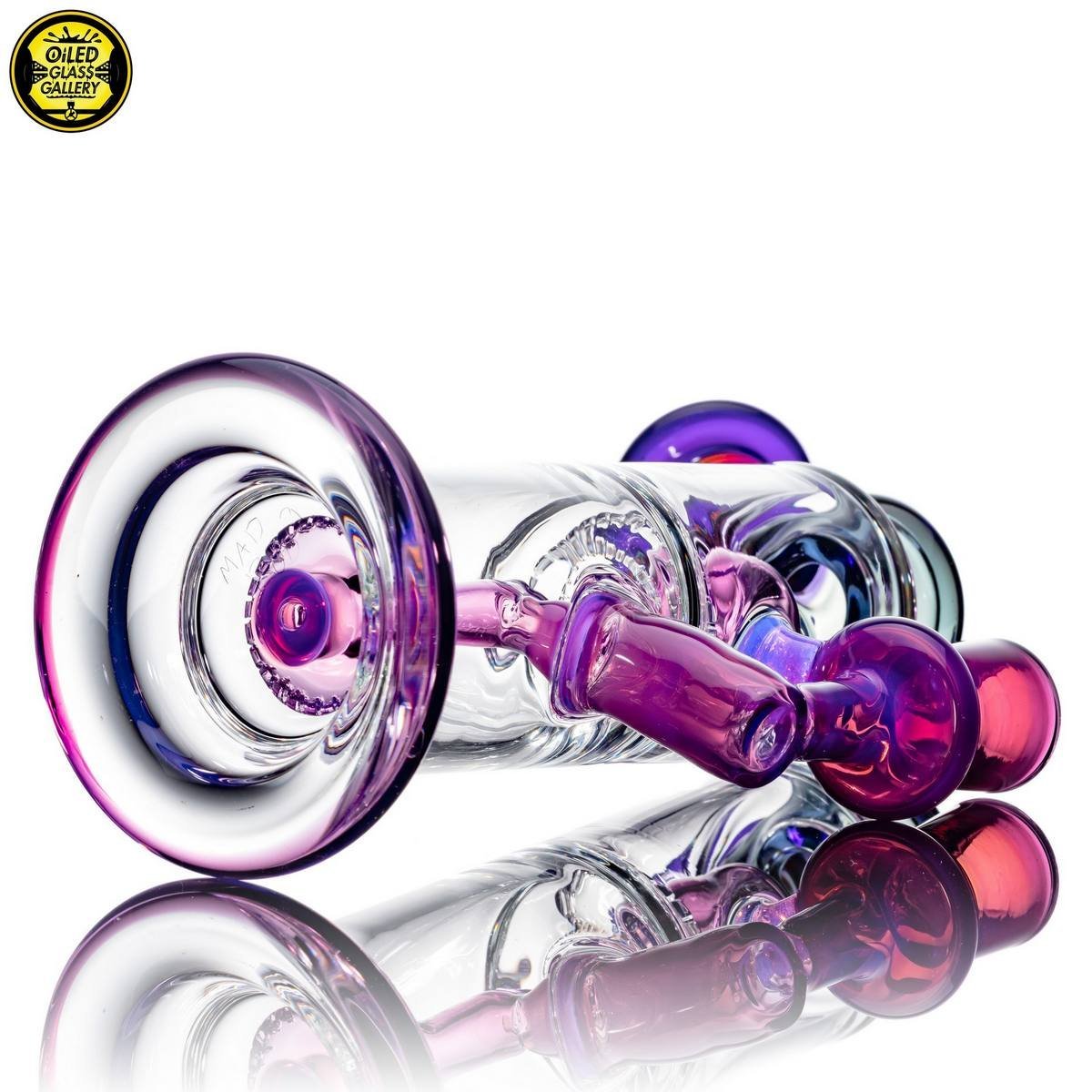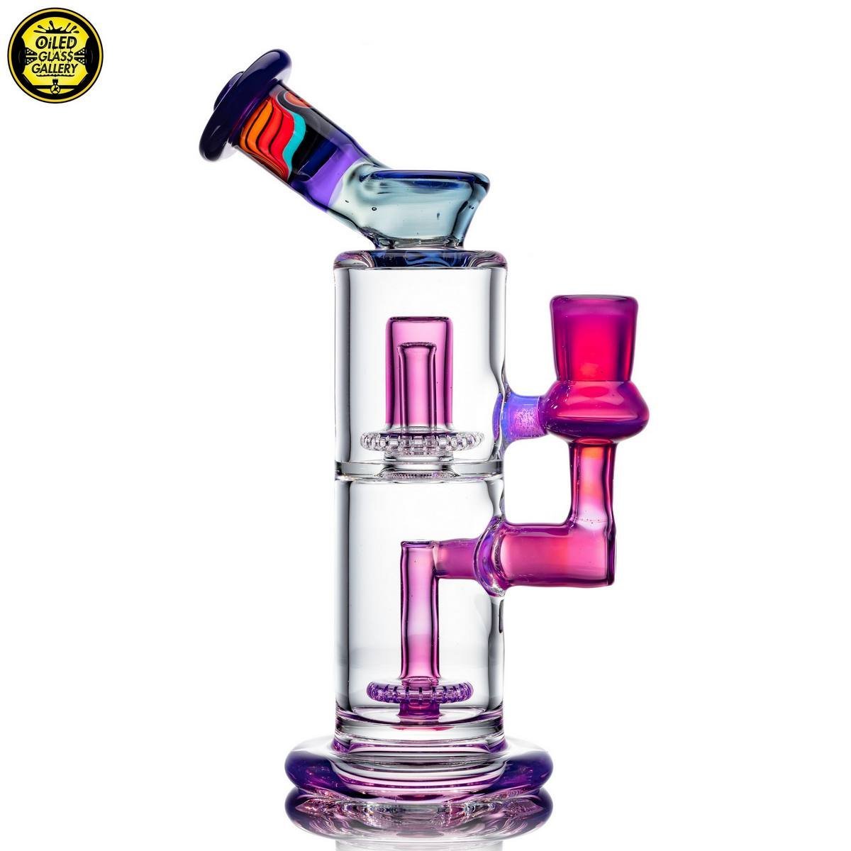 2021 14mm 7.5in CFL 45x5mm Double Chamber Banger Hanger Tube set made of Northstar Glass Star Gazer, Northstar Glass Empire, and Glass Alchemy CFL Potion featuring a micron circ to circ perc with kickback neck. This set comes with a matching slide and pendant.
