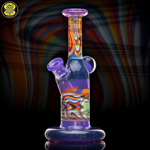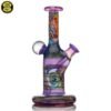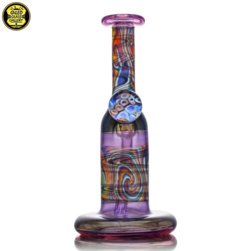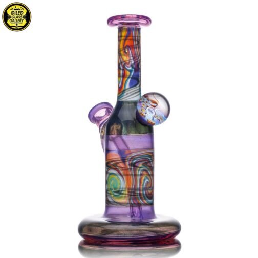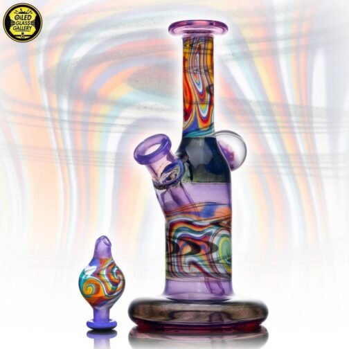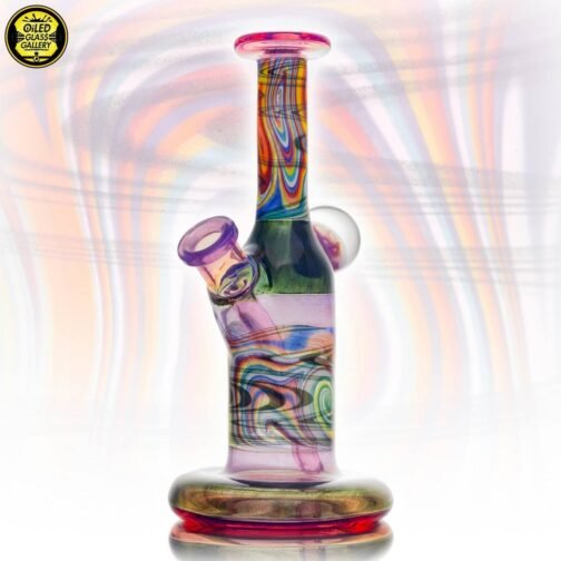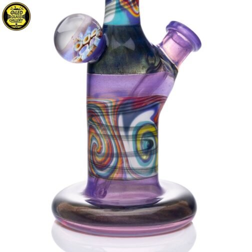 2021 14mm 8.5in CFL Double Layer Wig Wag Tube Set made of Greasy Glass Acadian Night, Rose Quartz & Glopal over Wild Berry. Features double layer wig wag tubing, a reef encased millefiori mib on the back, a fixed 2-hole downstem and a bubble cap.