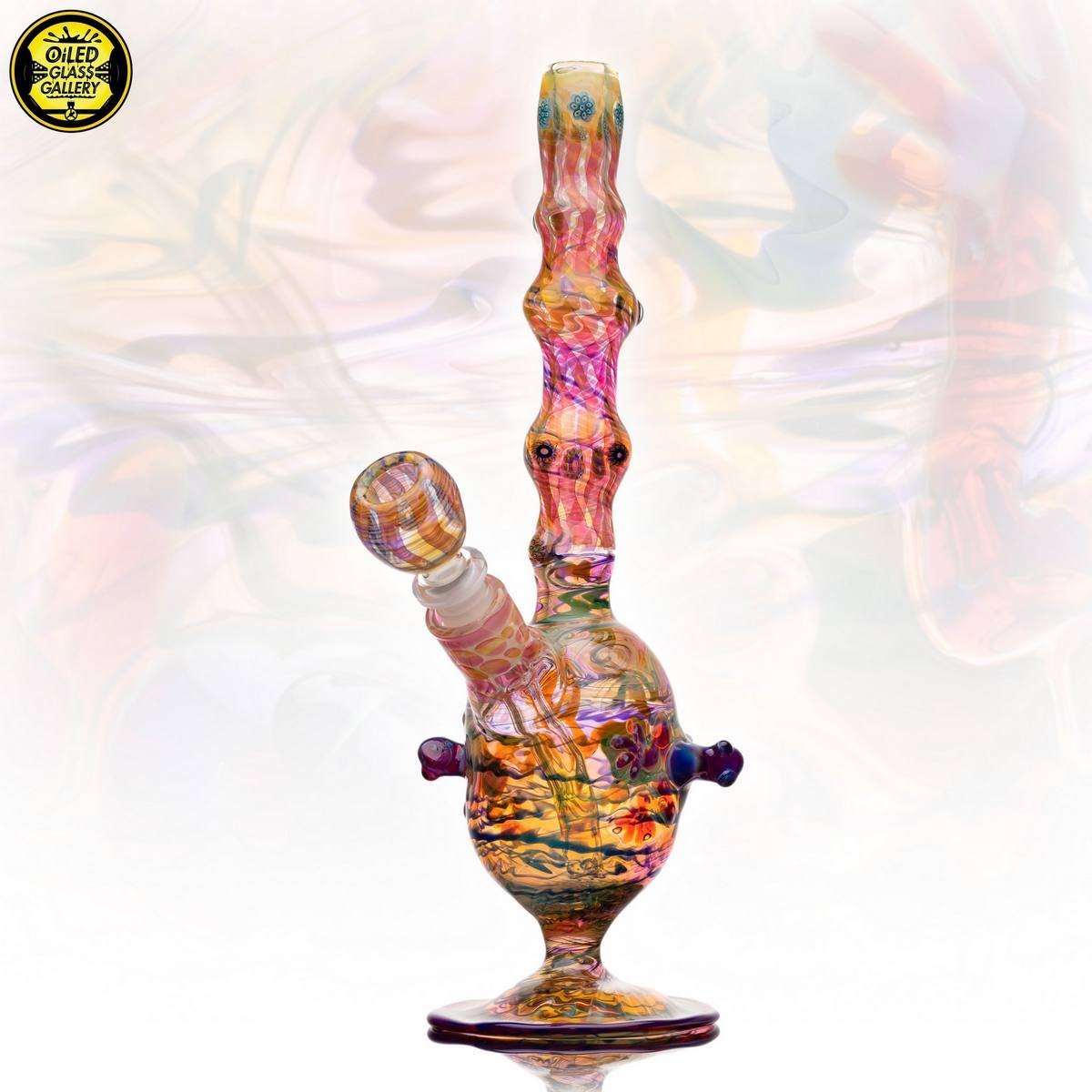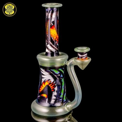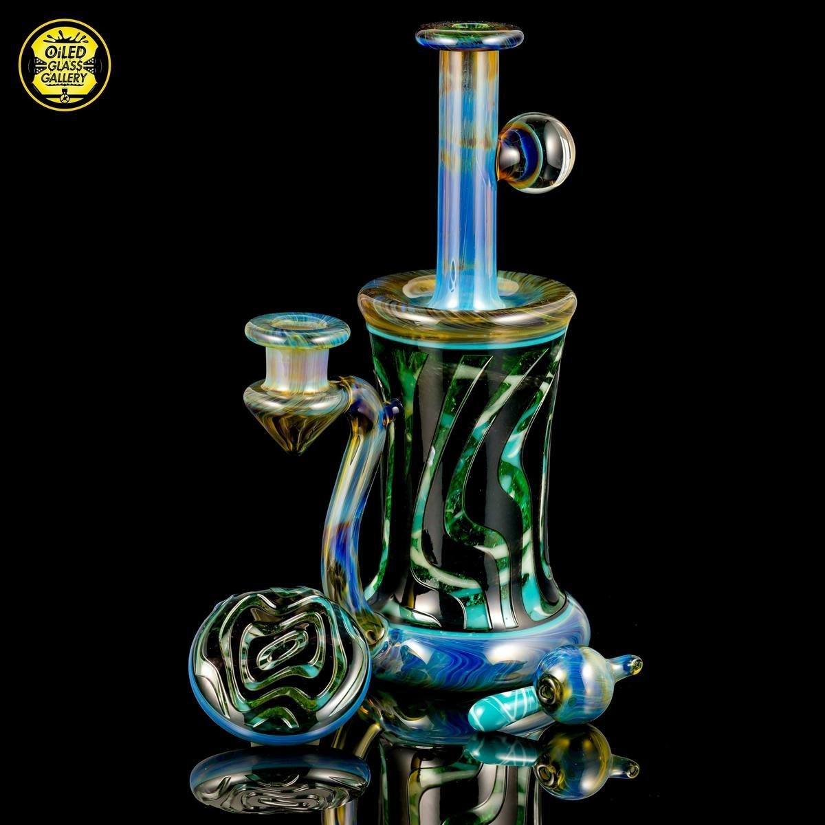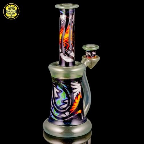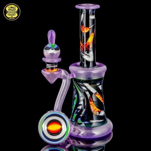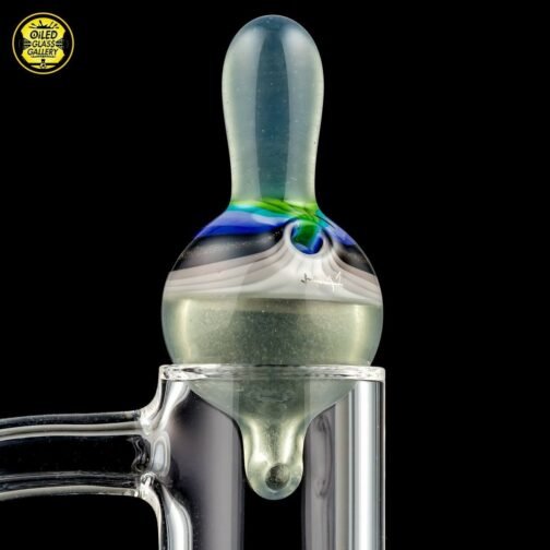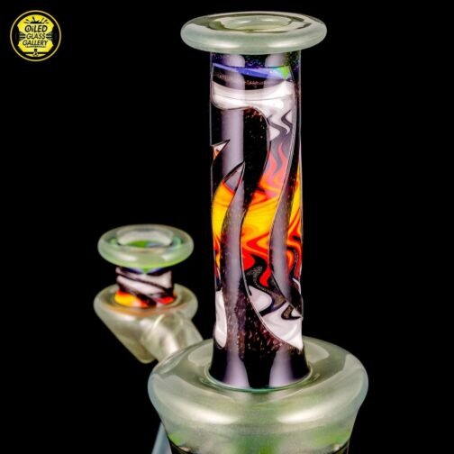 2019 14mm 6in CFL Graal Banger Hanger Tube set made of CFL Pastel Potion and carved black over wig wag. Comes with a matching pendant, a matching bubble cap, and comes shipped in a Black Apache 2800 case.