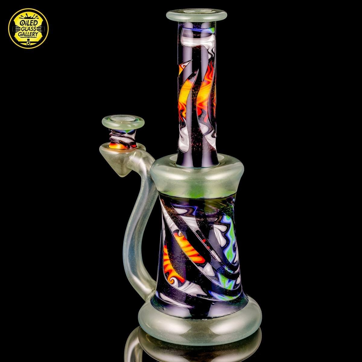2019 14mm 6in CFL Graal Banger Hanger Tube set made of CFL Pastel Potion and carved black over wig wag. Comes with a matching pendant, a matching bubble cap, and comes shipped in a Black Apache 2800 case.