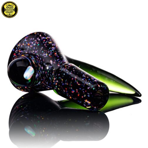 2021 14mm Crushed Opal 1-hole Slide featuring a Glass Alchemy Blue Dream horn handle and encased opal mib.