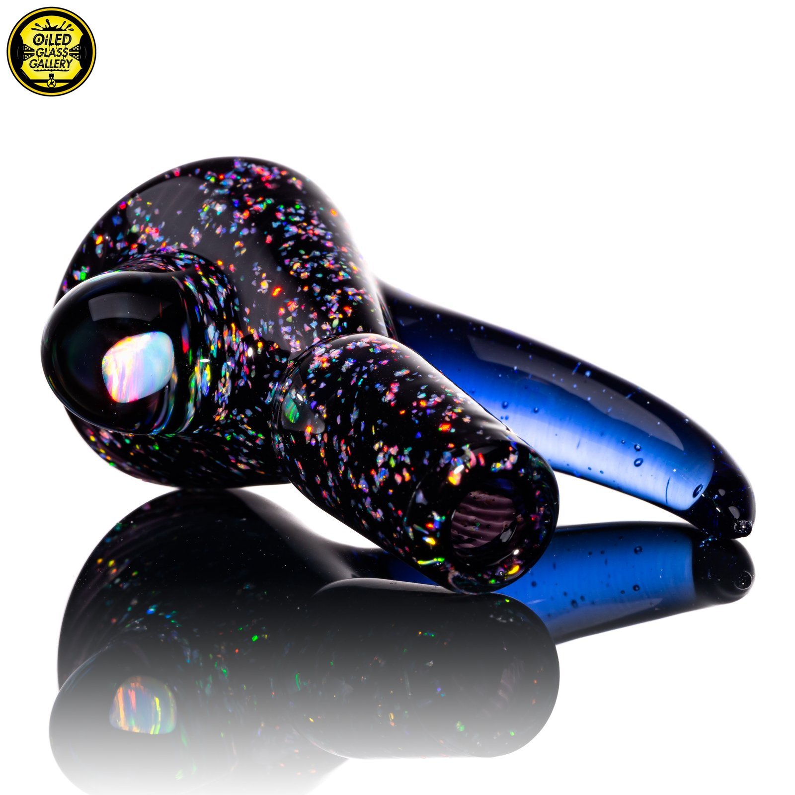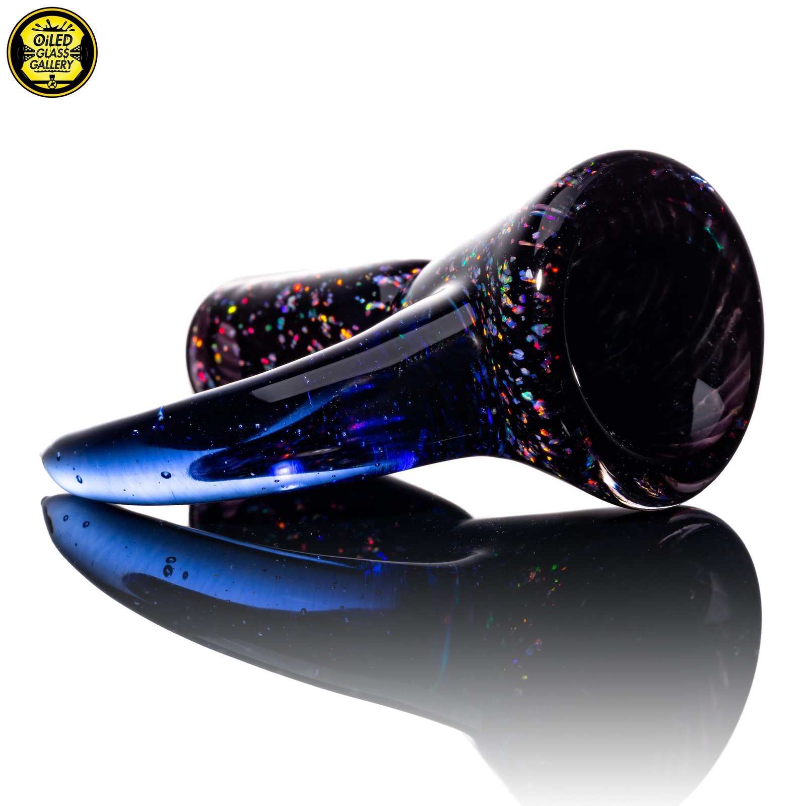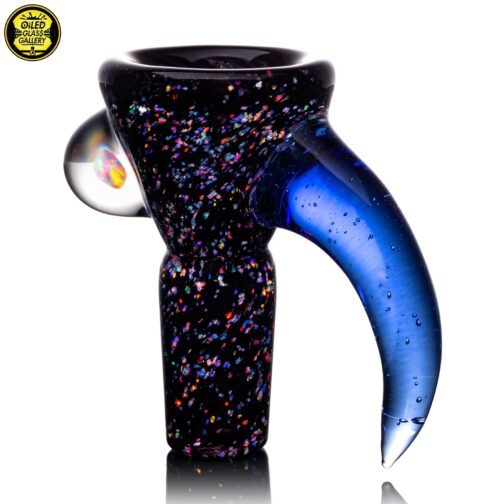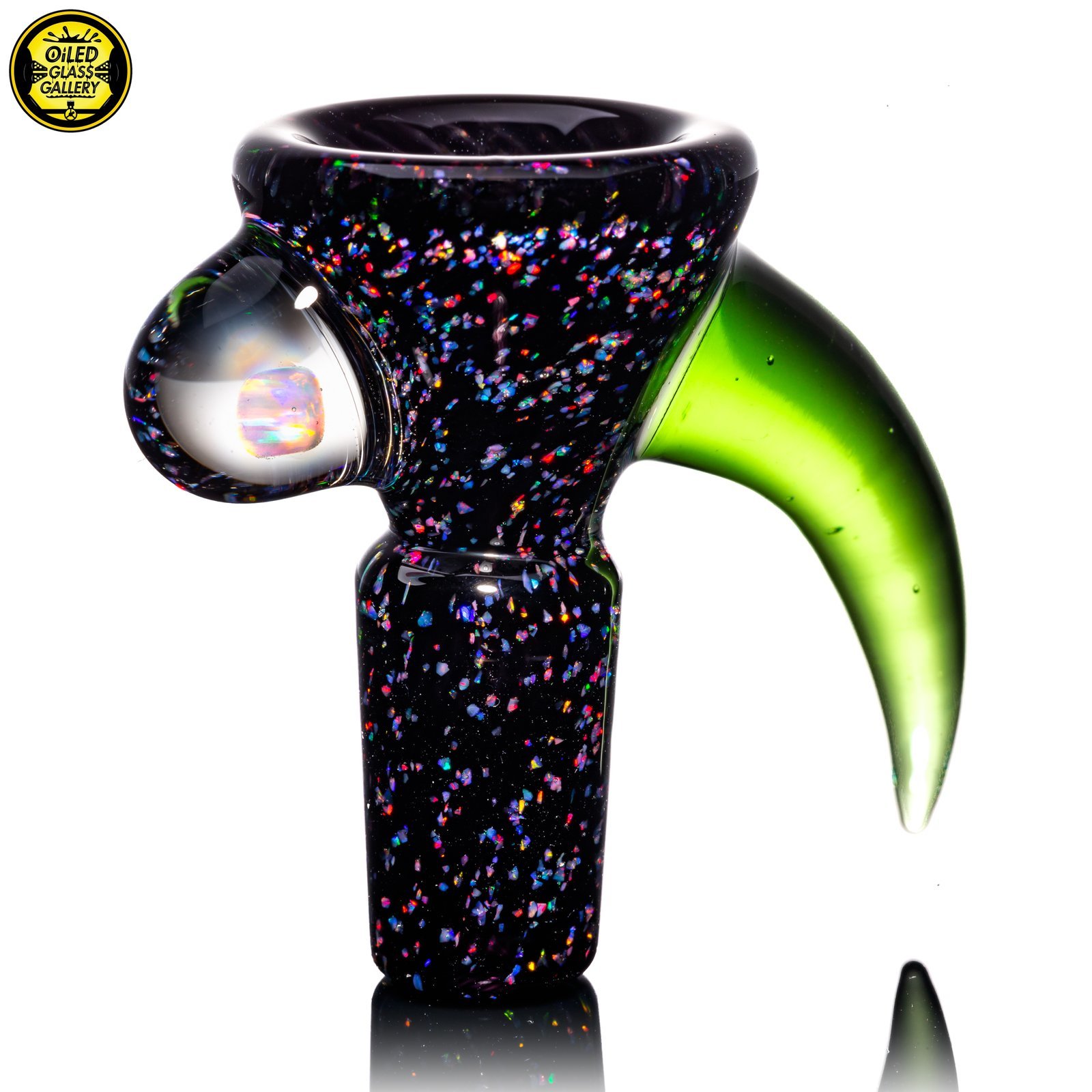 2021 14mm Crushed Opal 1-hole Slide featuring a Glass Alchemy Blue Dream horn handle and encased opal mib.