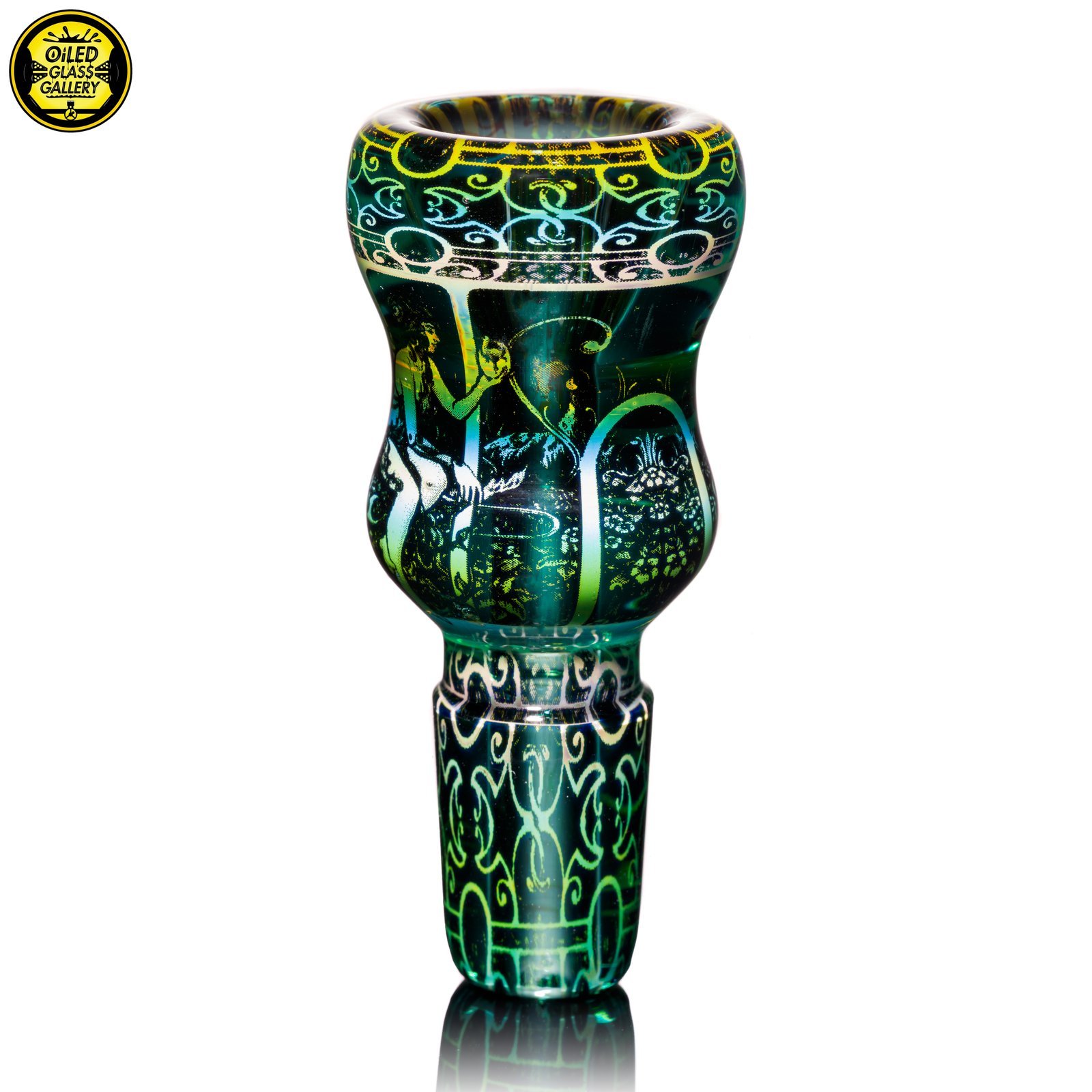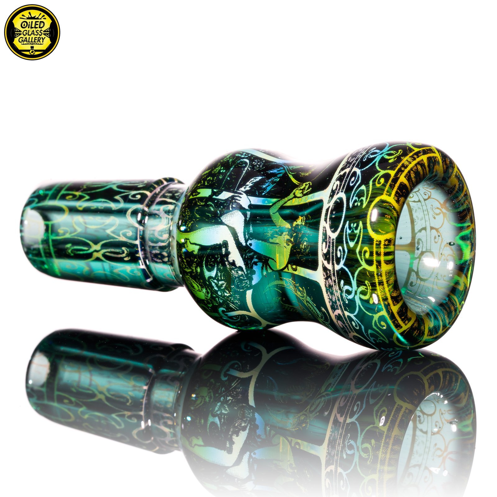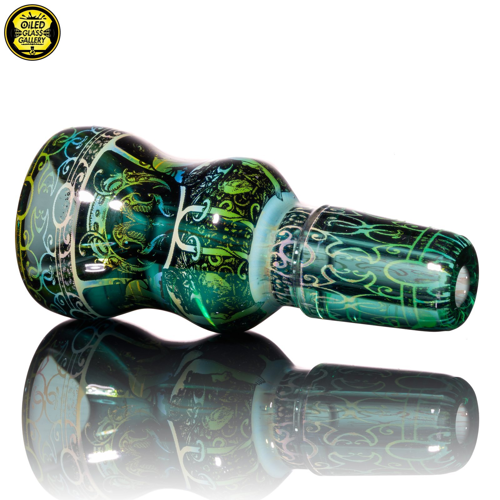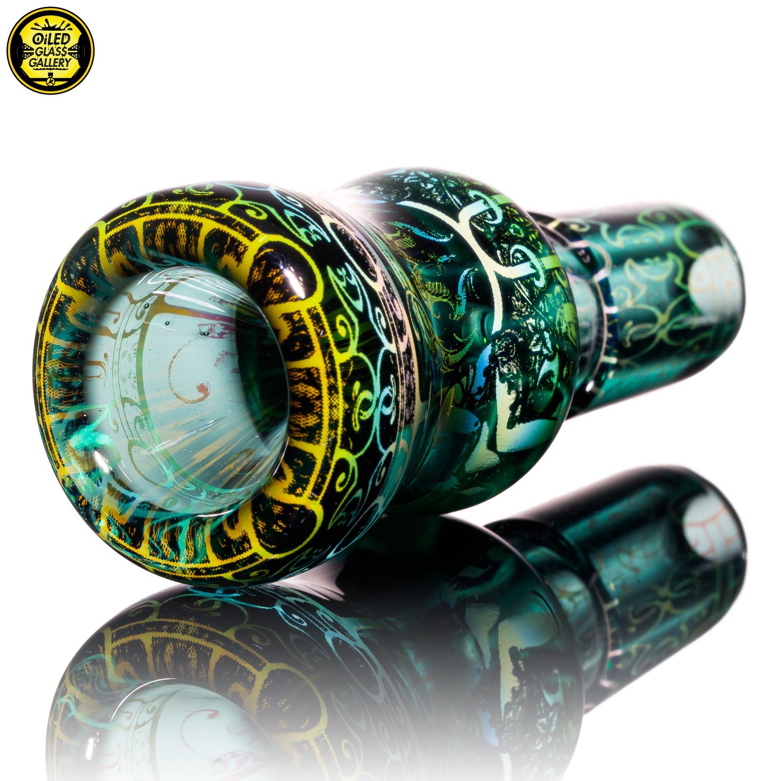 2021 14mm “Dream Hatcher” Hologram Fumed 1-hole Slide with a Teal background.