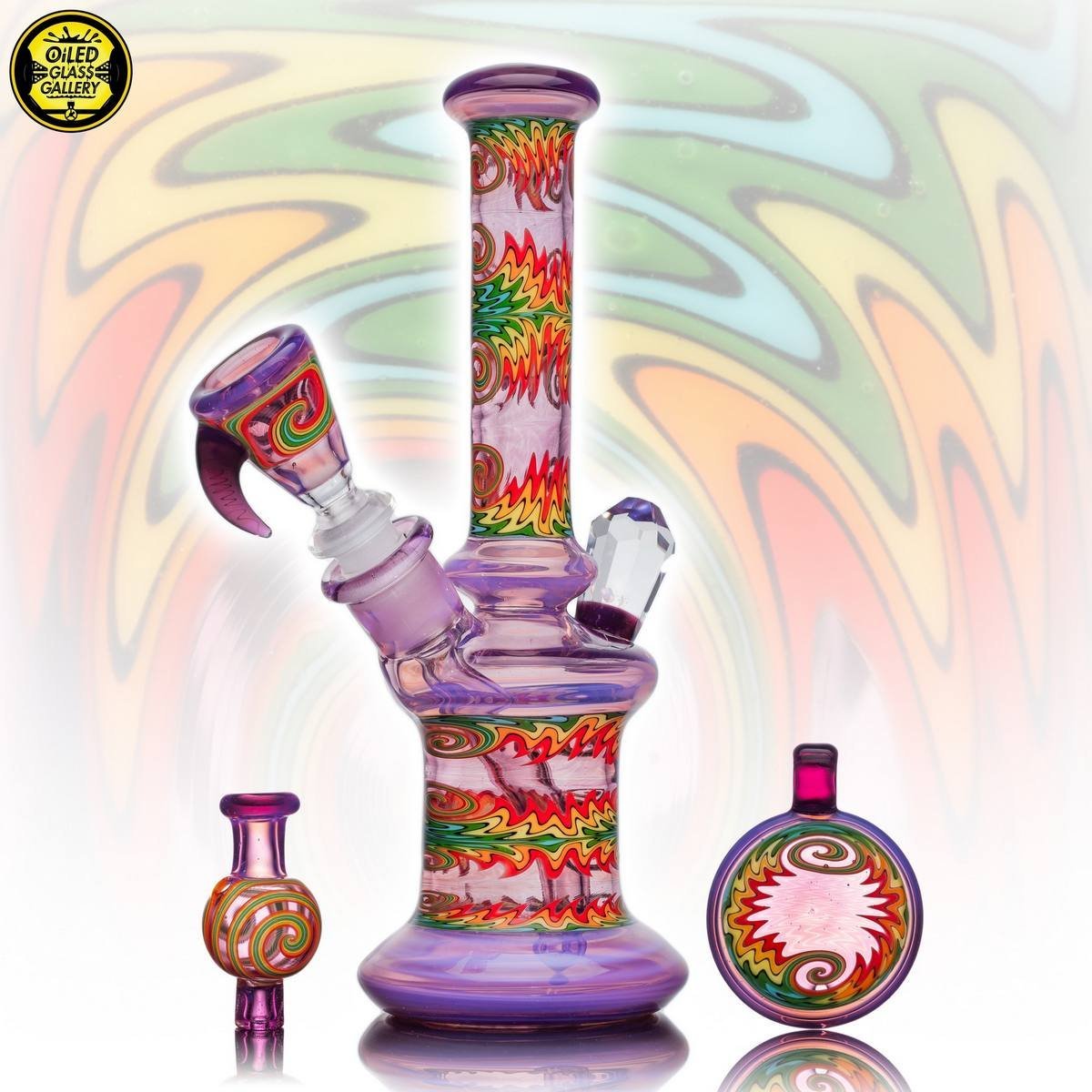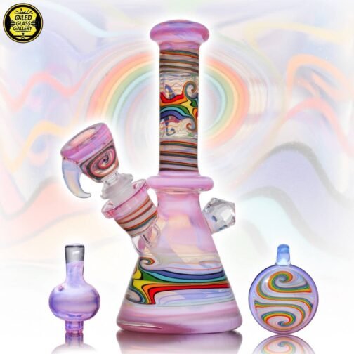 2021 14mm 10.25in Rainbow Wig Wag Beaker Tube made of Northstar Glass Karmaline with Rainbow wig wags. Features a faceted joint and an opal encased faceted mib on the back. Comes with a Northstar Glass Ghost removable 2-hole downstem, a slide, a bubble cap, a pendant, and shipped in a Black Pelican iM2050 case.