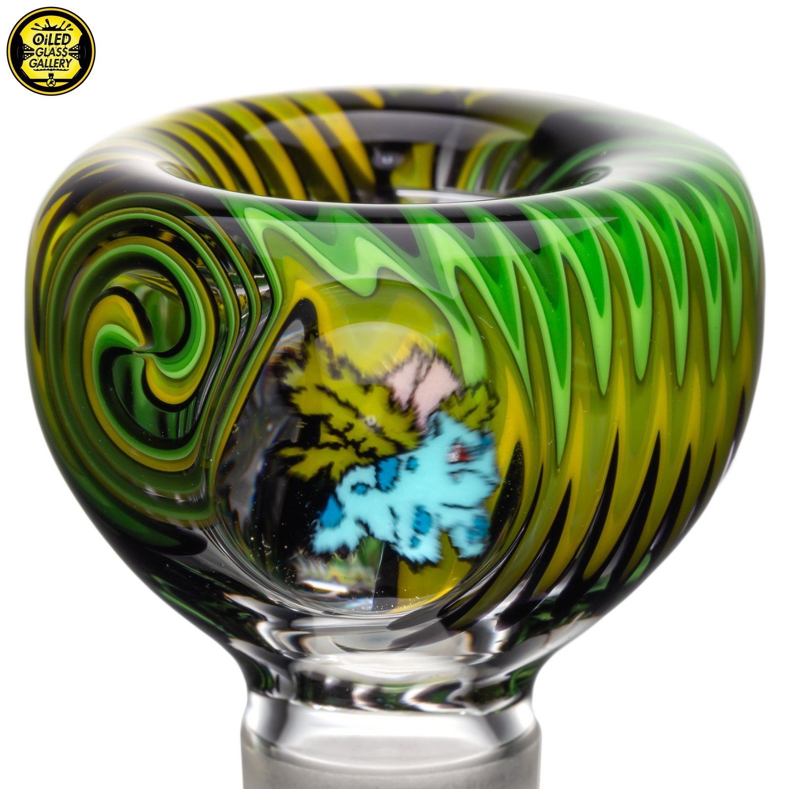 2020 14mm ReWig Millefiori 1-hole Slide featuring a beautiful encased Ivysaur Pokemon millefiori mib.