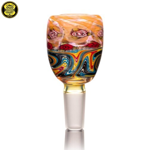 2022 14mm 2.75in Rose Millefiori Fumed Slide made of Gold & Silver fume and Linework featuring 14 Rose milles.