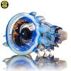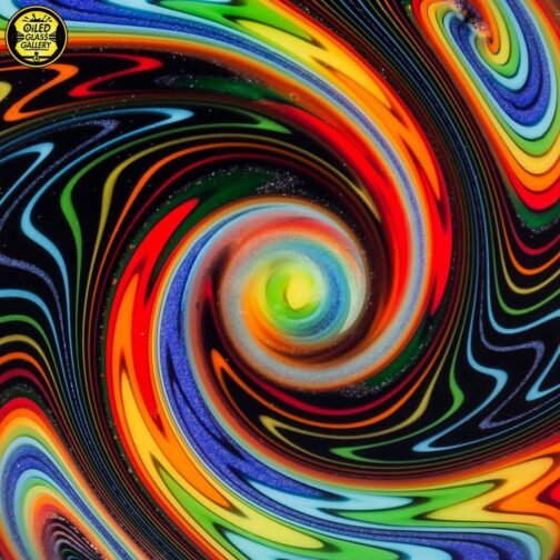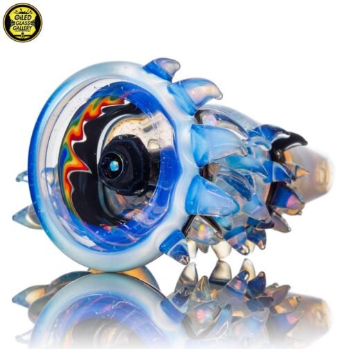 2021 14mm 6.25in UV Wig Wag Crushed Opal Cone Lamp Tube set made of Crushed opal over Northstar Glass Ghost, Crushed opal over Northstar Glass Jet Black and Rainbow Wigwag sections with UV stringers. This set features 33 mounted horns, including 3 with encased opals, a 3-hole perc with encased opal underneath and comes with a matching horned spinner cap and pendant, all shipped in a Black Apache 1800 case.