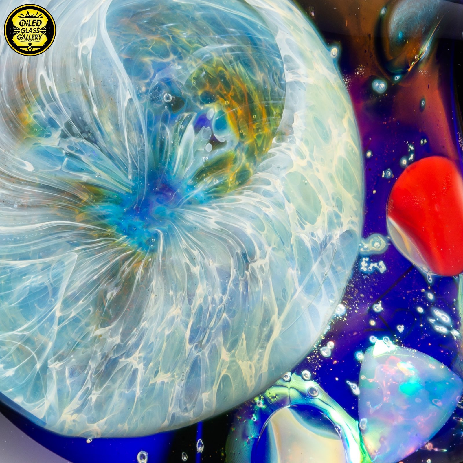2021 18mm 3-hole slide made featuring a beautiful fumed planetary mib with an encased black opal.