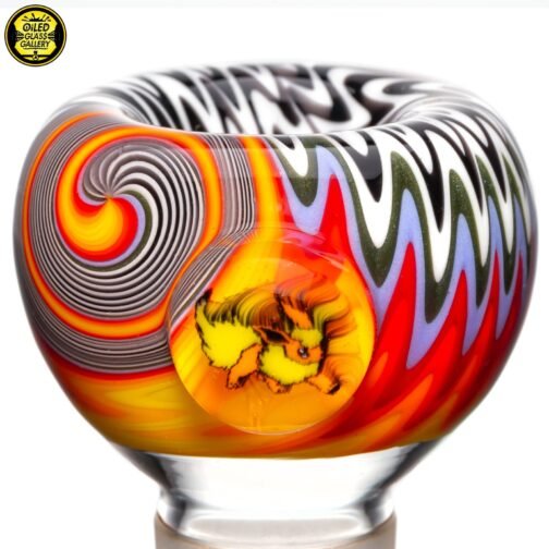 2020 18mm ReWig Millefiori 1-hole Slide featuring a beautiful encased Flareon Pokemon millefiori mib.