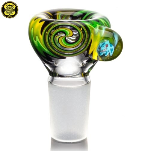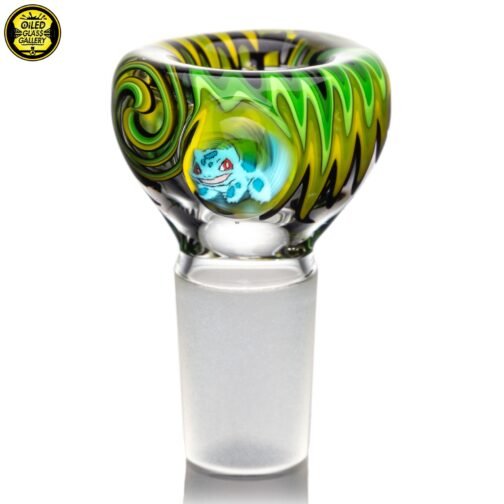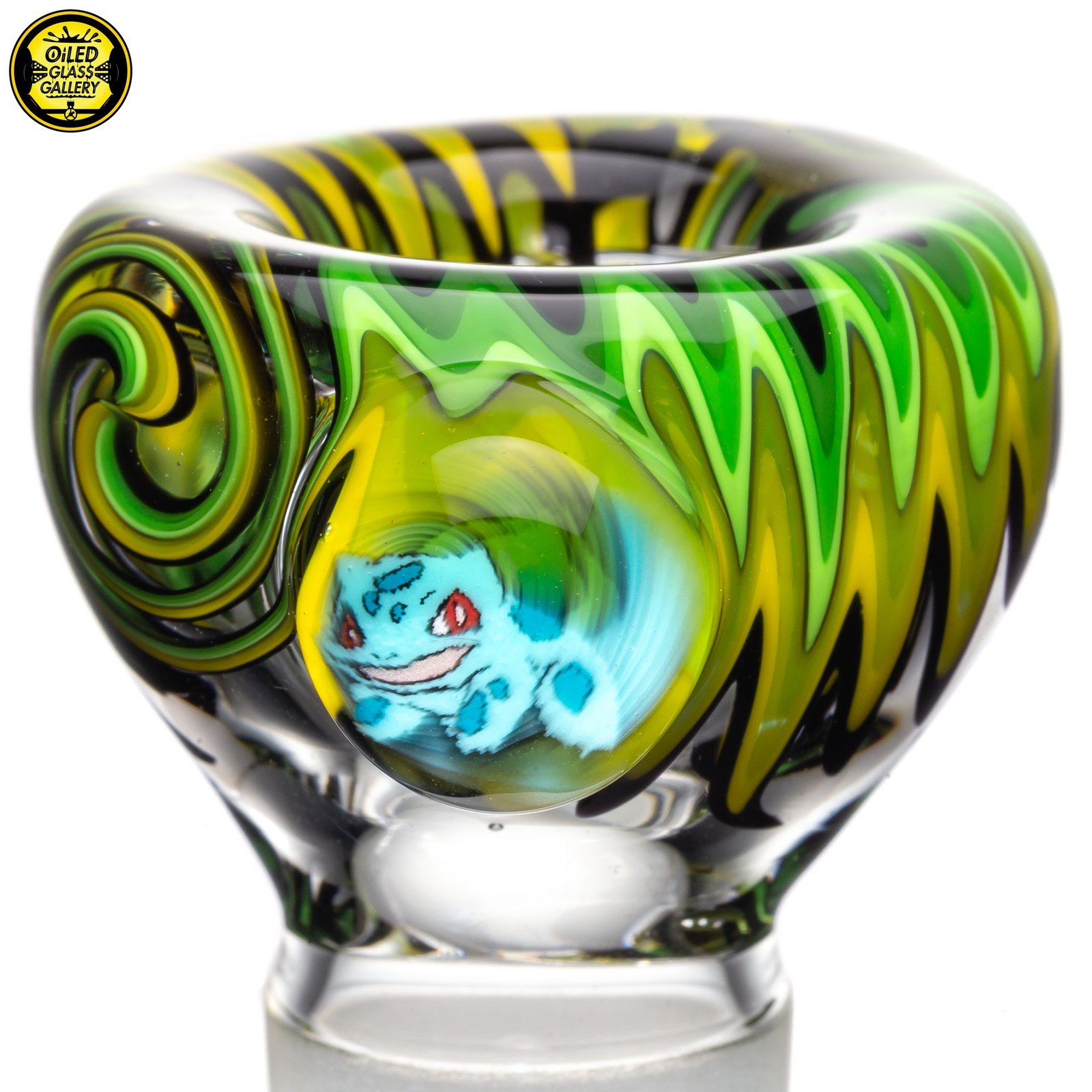 2020 18mm ReWig Millefiori 1-hole Slide featuring a beautiful encased Ivysaur Pokemon millefiori mib.