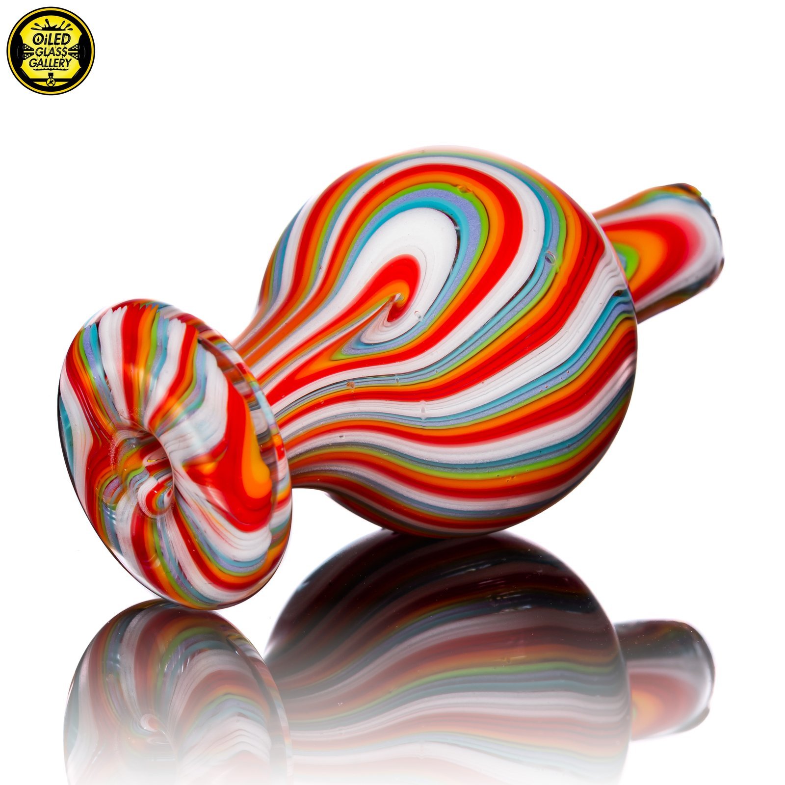 2021 28.5mm Bubble Cap made of Blue, Green, Orange, Red & White spiral tubing that fits most bangers up to 34mm.