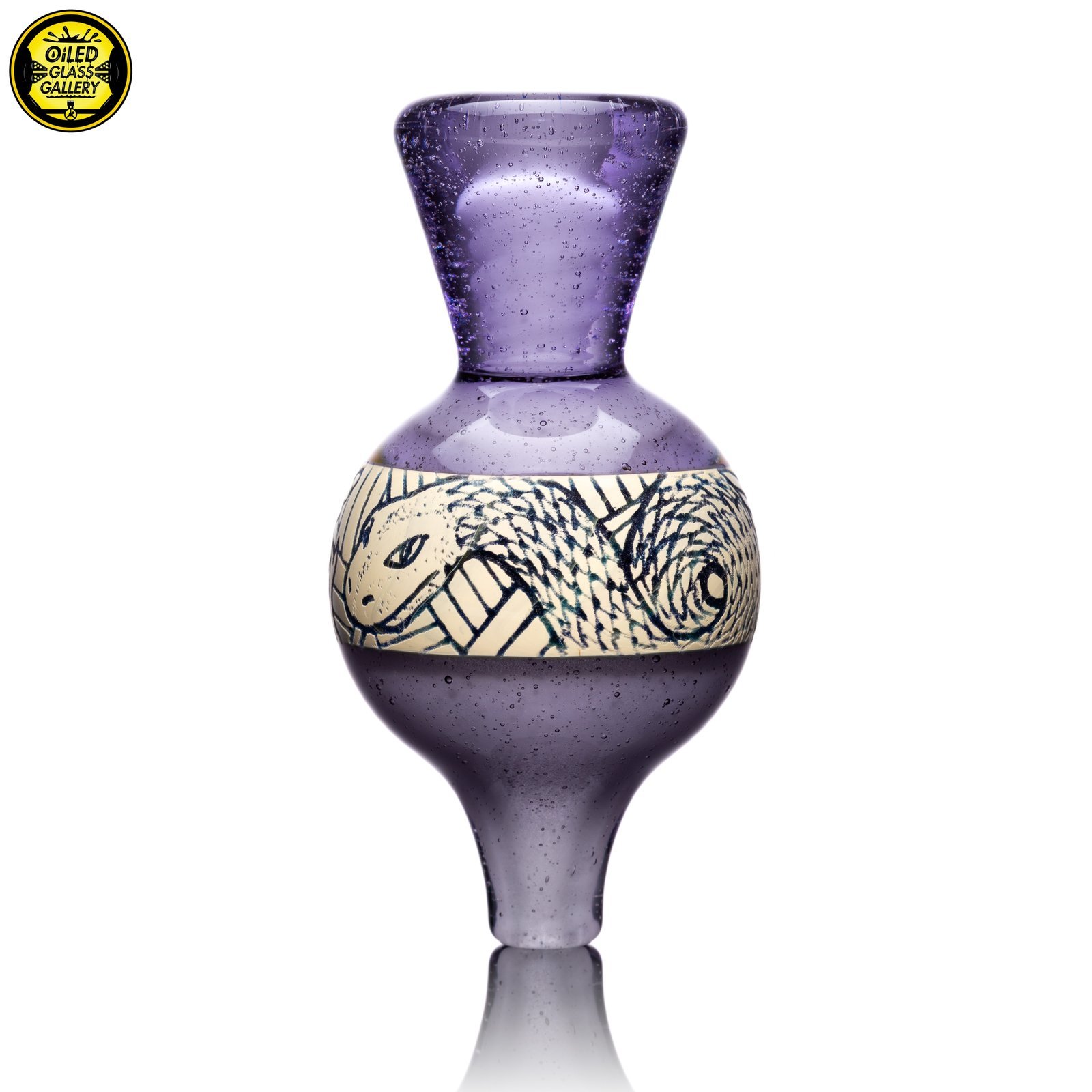 2021 29.5mm CFL Carved Reptile Bubble Cap made of Colorado Color Co CFL Willy Wonka that fits most bangers up to 35mm.