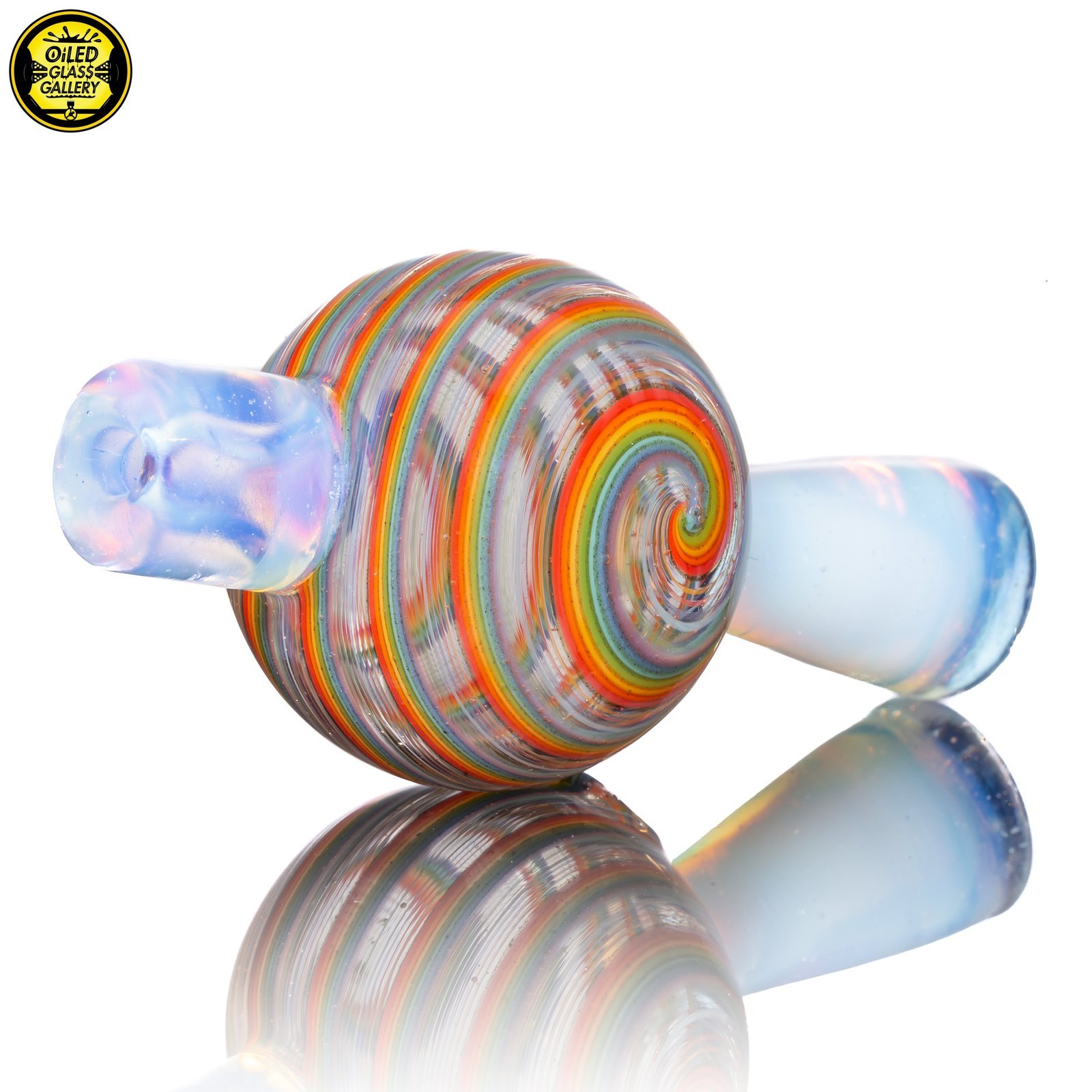 2021 32mm Rainbow Spiral Bubble Cap featuring Northstar Glass Ghost handle & spout that fits most bangers up to 38mm.