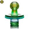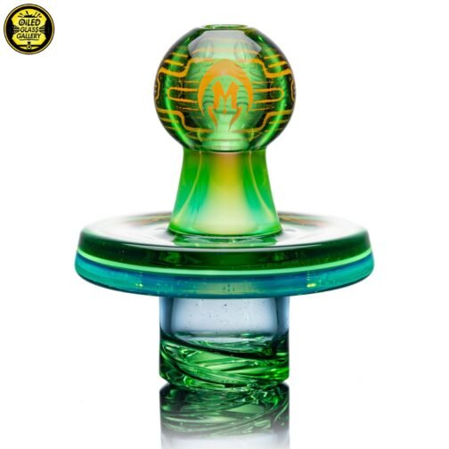 2021 36mm Hologram Fumed Maria spinner cap. Released during the “Pod” Hologram series with a 2-hole spiral stem with Green tint made of highlight colors Northstar Glass Dark Blue over Northstar Glass Millennium Moss and Northstar Glass Ghost over Northstar Glass Berry Gumbolt.